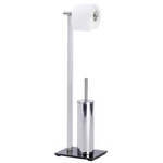 Suport cu un capac pentru hârtie igienică și o perie de toaletă cu un recipient din sticlă, suport pentru baie - WENKO