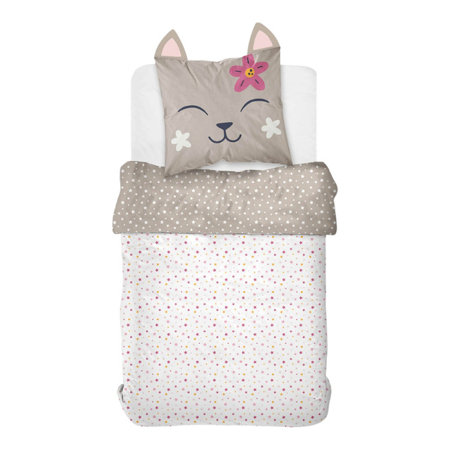 Lenjerie de pat pentru copii 140x200 cm LAZY MORNING, din bumbac, cu față de pernă cu urechi, pisicuță