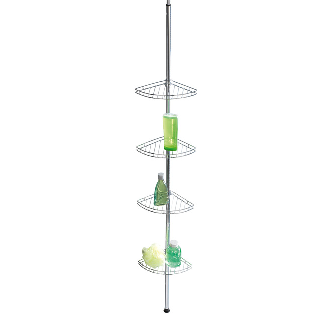 Raftul telescopic Prea extrem de spațios vă va face accesoriile pentru baie mereu la îndemână. Are până la 4 nivele, pe care fiecare dintre membrii gospodăriei își poate seta gelurile, șampoanele sau alte accesorii de spălat preferate. Este potrivit pentru instalare în colțul căzii și în cabina de duș. Poate fi folosit și pentru utilizarea generală a băii. Instalarea nu necesită găurire sau lipire - raftul este suficient pentru a fi instalat prin punerea barei între podea și tavan. Posibilitatea reglării înălțimii de la 56 la 275 cm vă permite să reglați raftul la nevoile individuale. Structura cu nervuri permite apei care picură să scape liber.