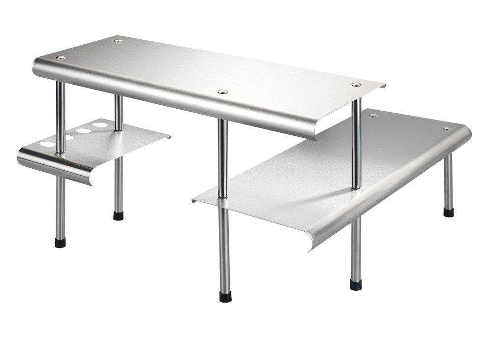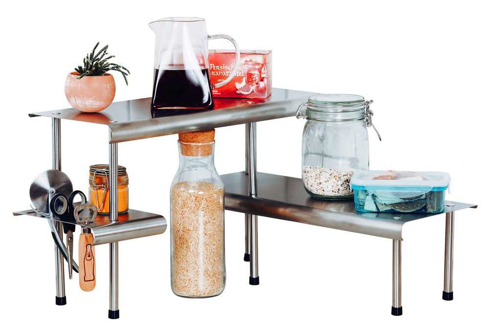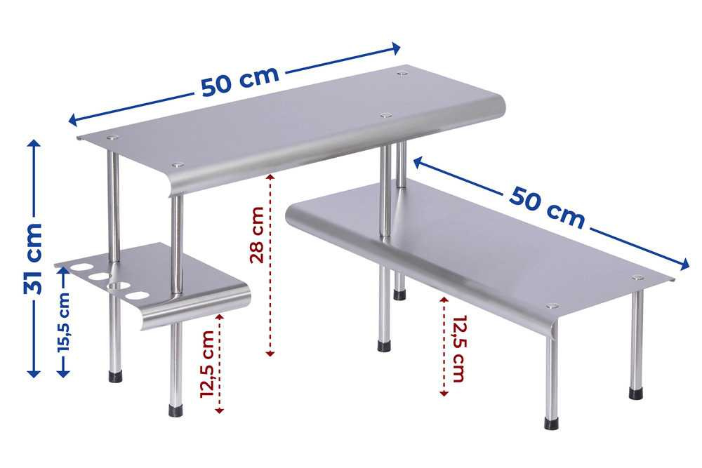 Colțar Raft de bucătărie pe 2 niveluri Massivo TRIO vă va ajuta să vă organizați spațiul cu înțelepciune. A fost proiectat pentru a fi plasat într-un colț pe un blat de bucătărie. Datorită acestui fapt, veți dezvolta spațiu neutilizat și veți găzdui o mulțime de lucruri . Acum vor fi mereu la îndemână.