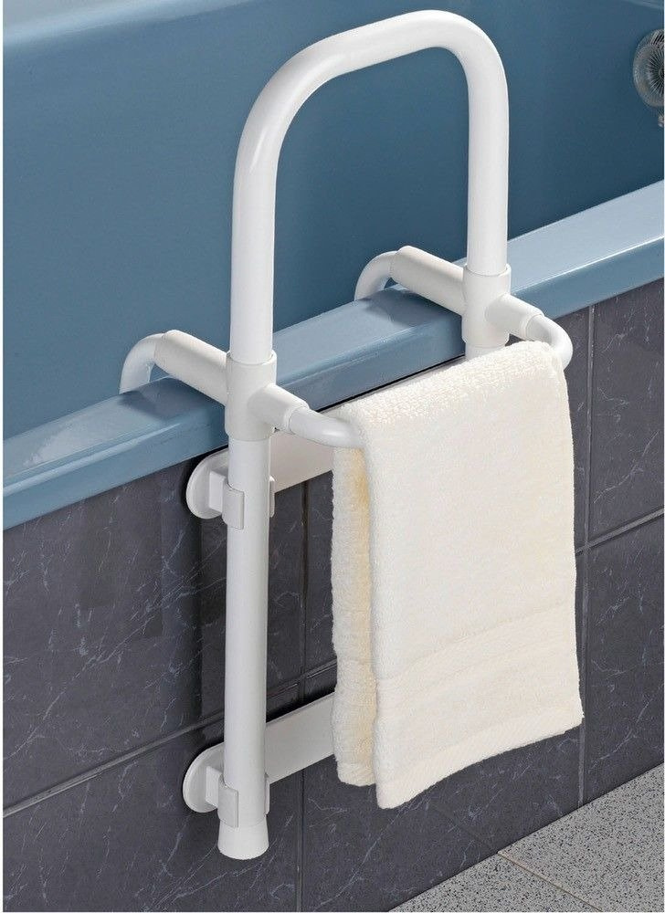 Bara de sprijin este recomandata persoanelor cu probleme ale coloanei vertebrale, persoanelor in varsta sau cu dizabilitati. Aceasta garanteaza un acces facil in cada, in conditii de siguranta optime. Barele se pot regla de la 6.5 pana al 13.5 cm latime. Se monteaza cu ajutorul unor saibe autoadezive. Partea superioara este aseaza pe marginea cazii.
