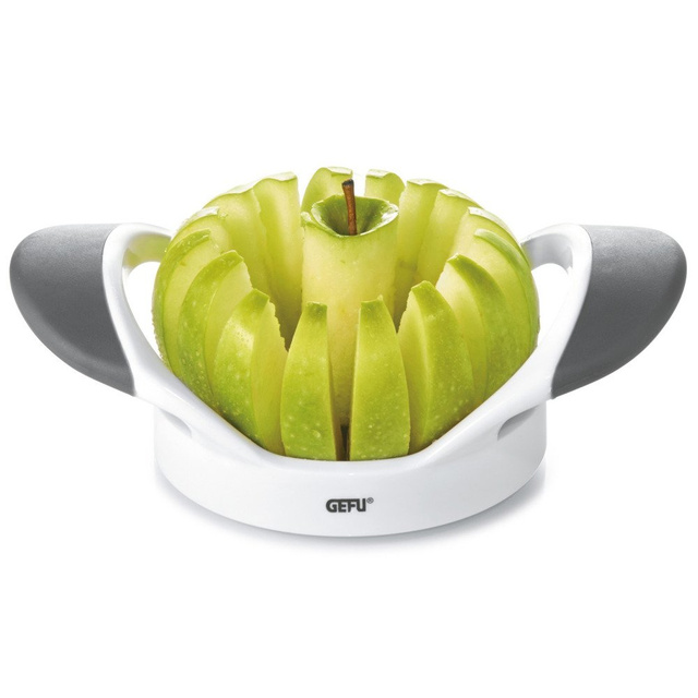 Mașina de tăiat fructe Gefu funcționează ca un dispozitiv de tăiat și feliat inteligent într-un singur dispozitiv. Mânerele confortabile și un suport facilitează utilizarea echipamentului și vă protejează degetele de răniri accidentale.