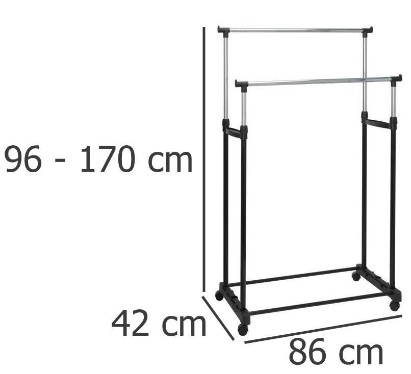 Suport cu doua nivele pentru haine - jachete, paltoane, camasi, etc. Potrivit pentru  casa, birou sau casa de vacanta. Nu ocupa mult spatiu. Este echipat cu 4 roti, datorita carora puteti sa-l mutati rapid in orice loc. Are o structura stabila si durabila.