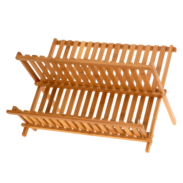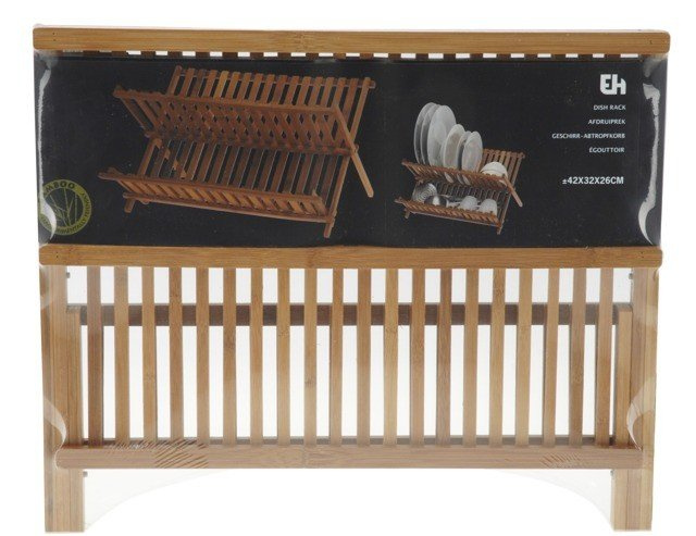 Este fabricat din bambus 100% natural, pe 2 nivele pentru farfurii, cupe, pahare etc. Faciliteaza uscarea vaselor spalate manual si protejeaza contra stropilor. Acesta permite accesul usor la elementele aflate pe el. Este rezistent la umiditate si distorsiune. Nu ocupa mult spatiu si permite scurgerea rapida a apei.