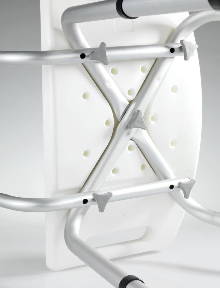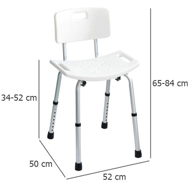 Stabil și confortabil un scaun de duș va oferi confort persoanelor cu probleme de spate, persoanelor în vârstă și cu dizabilităților când folosesc dușul. Tampoanele pentru picioare împiedică zgârierea suprafeței . Reglarea înălțimii scaunului în intervalul de la 34 la 52 cm (toate de la 65 la 84 cm) permite reglarea în funcție de nevoile individuale ale fiecărui utilizator. Scaunul de duș este echipat cu un spătar și un scaun spațios, cu găuri care permit apei să se scurgă liber. Garantează performanța confortabilă și sigură a tuturor procedurilor igienice fără a fi nevoie să stați în cabină.