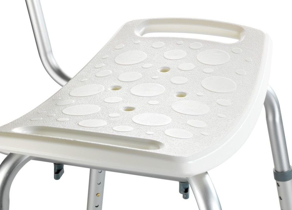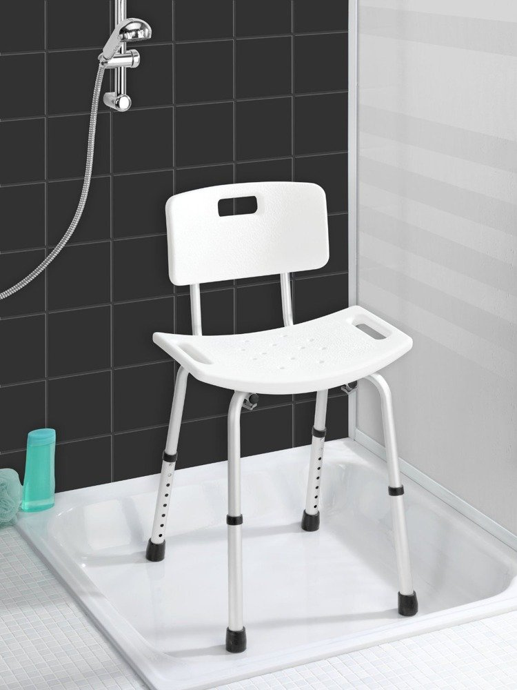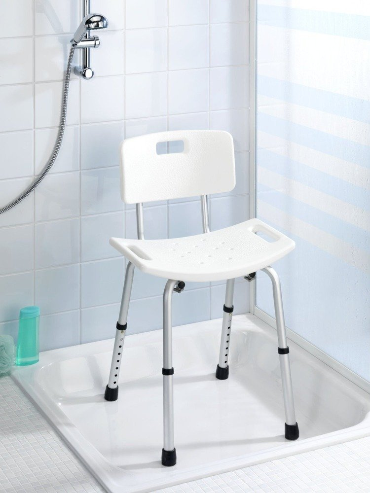 - un scaun de duș cu spătar garantează o baie sigură și confortabilă,