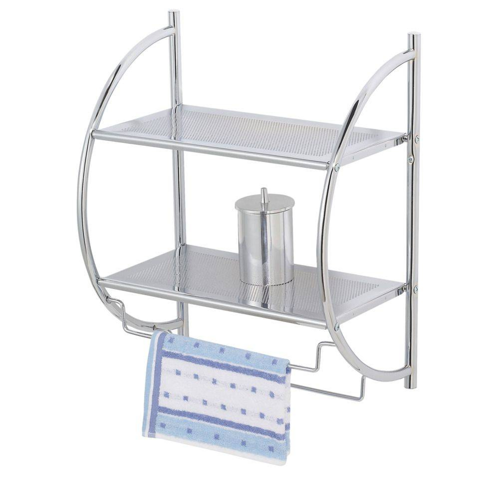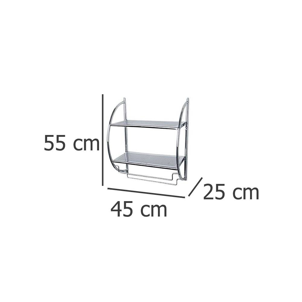 Raft pentru baie cu 2 nivele pentru montare pe perete. Destinat pentru depozitarea accesoriilor și produselor cosmetice pentru baie . Echipat cu două umerașe pentru agățarea prosoapelor sau uscarea lenjeriei. Brevetat nu ocupă mult spațiu și oferă utilizare maximă a spațiului. Va fi, de asemenea, perfect pentru camere înguste și mici. Fabricat din oțel cromat.