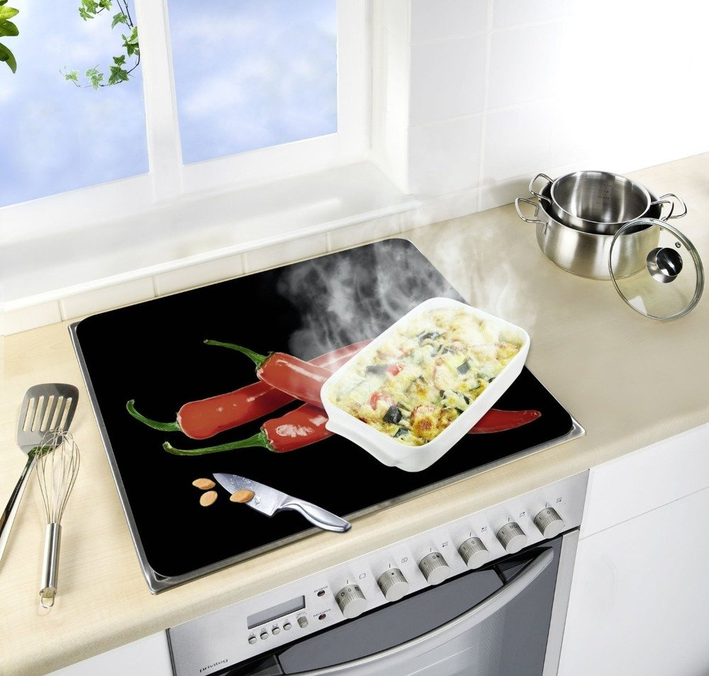 Fabricate din sticlă călită, plăcile de protecție sunt destinate să acopere plitele electrice, ceramice și pe gaz. Acestea protejează împotriva murdăriei, a deteriorării și a prafului. Sunt foarte durabile și rezistente la impacturi și zgârieturi .Perfecte ca blat suplimentar pentru taiere, tocat, framantat si rulat aluatul. Sunt un decor frumos al oricărui interior de bucătărie. Când gătiți, acestea pot fi folosite ca suport pentru oale, tigăi sau fierbător și pe perete pentru a-l proteja de stropire. Acestea îndeplinesc toate cerințele UE de calitate și siguranță. Plitele trebuie utilizate numai cu zonele de gătit oprite.
