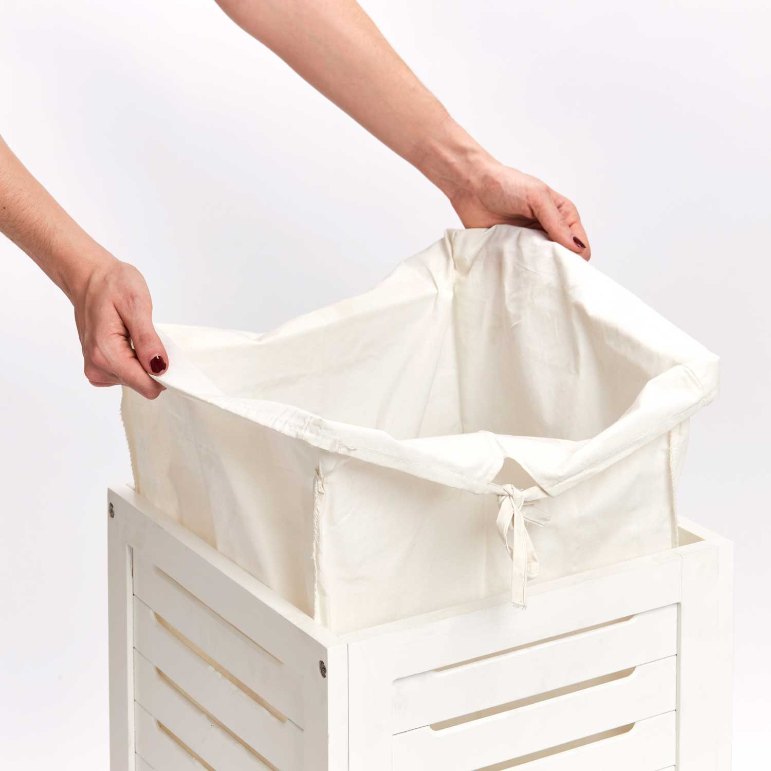 Acesta este un cos alb pentru rufe, lenjerie de corp si haine. Este echipat cu un capac detasabil care permite accesul convenabil la interior. In interior, o insertie de panza asigura un flux adecvat de aer. Este realizat solid si estetic si are un design simplu, scandinav. Cosul are o culoare universala si accesoriul este usor si compact. Este usor de pastrat curat si functioneaza bine in baie si nu numai.