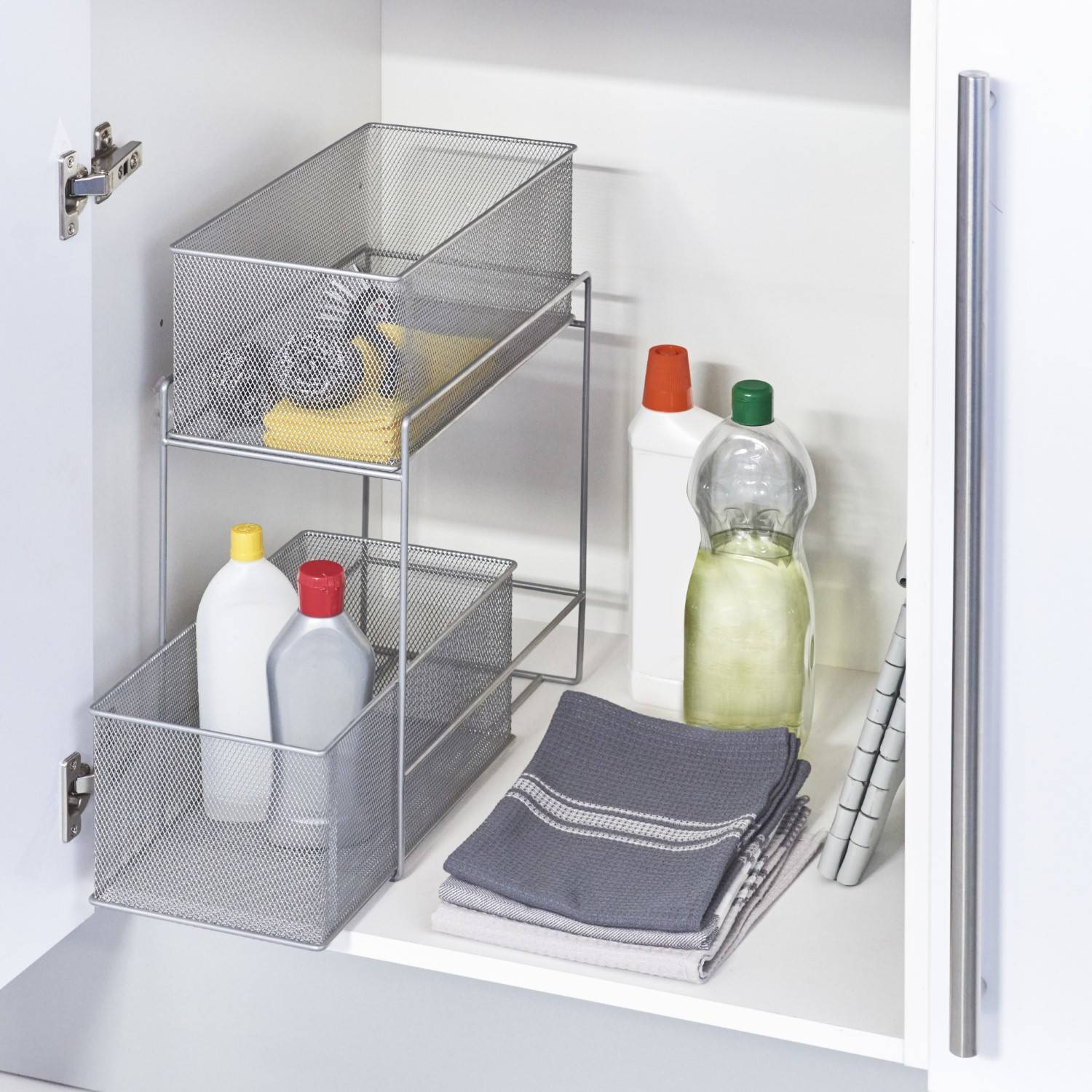 Oganizatorul cu 2 niveluri vă va ajuta sa organizati spatiul cu intelepciune. Perfect pentru depozitarea borcanelor de conservare, recipiente, condimente etc. Acum vor fi mereu la îndemână. Construcție metalică stabilă i manopera solida garanteaza utilizarea pe termen lung.