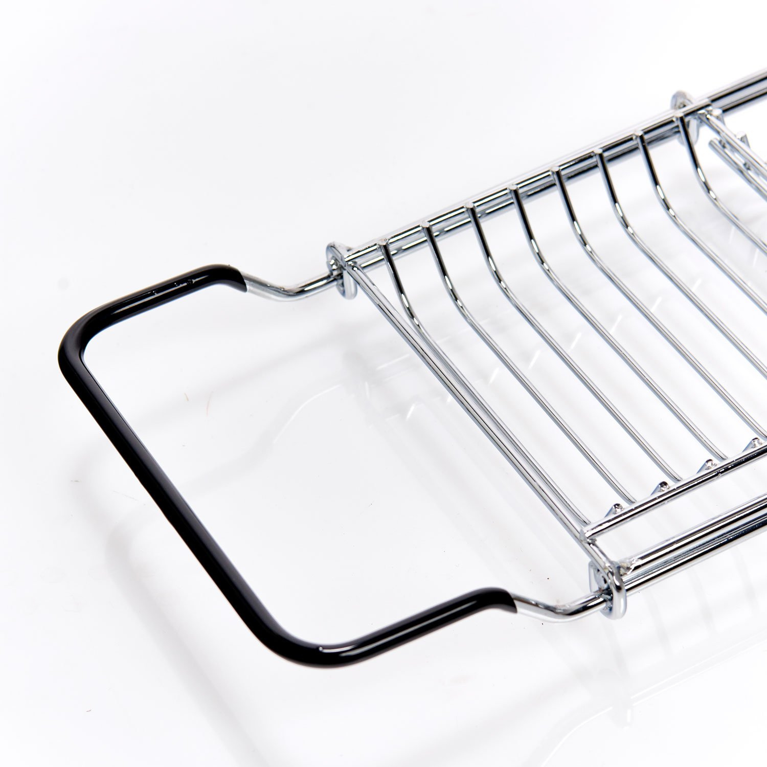 Un raft de baie pentru cadă va face ca accesoriile și prosoapele dvs. de baie să fie mereu la îndemână. Ajustarea lungimii de la 65,5 la 76,5 cm vă permite să ajustați raftul la orice cadă. Structura cu nervuri permite scurgerea liberă a apei. Structură ușoară și stabilă în același timp. Marginea înaltă pentru a preveni căderea accesoriilor.