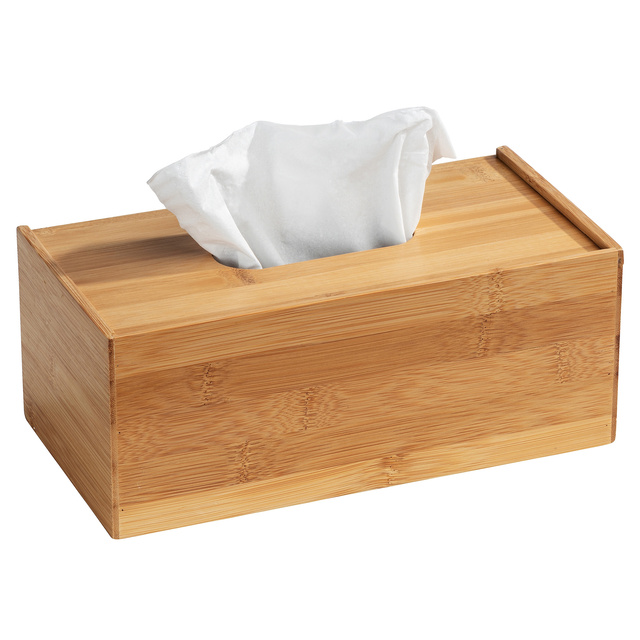 Cutia pentru șervețele fabricată din bambus va înfrumuseța baia ta, camera de zi sau dormitorul. Este foarte rezistentă și rezistentă la umiditate și deformare.Are dimensiunile 25 x 13 x 10 cm, care corespund dimensiunilor standard ale recipientelor pentru șervețele, care sunt disponibile în vânzare generală. Închiderea simplă facilitează completarea liberă a recipientului.