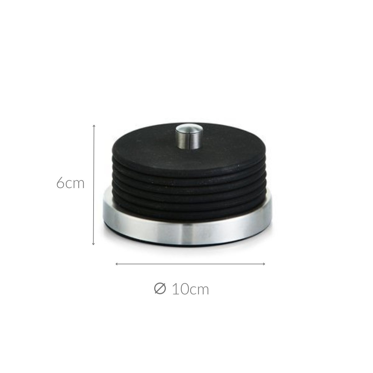 Set de 6 suporturi rotunde pentru farfurii sau cani. Are o functie decorativa si practica in acleasi timp. Este potrivit pentru orice bucatarie moderna, sufragerie, living sau bar. Fabricat din silicon. Culoare neagra. Un suport metalic este inclus.