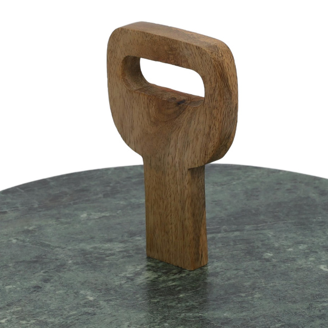 Tava de servire din marmura, Ø 30 cm, suport din lemn