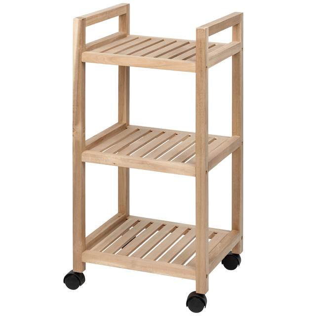 Raft pentru baie pe roti ACINA cu trei rafturi, lemn de salcam, 31x35x72 cm, Wenko