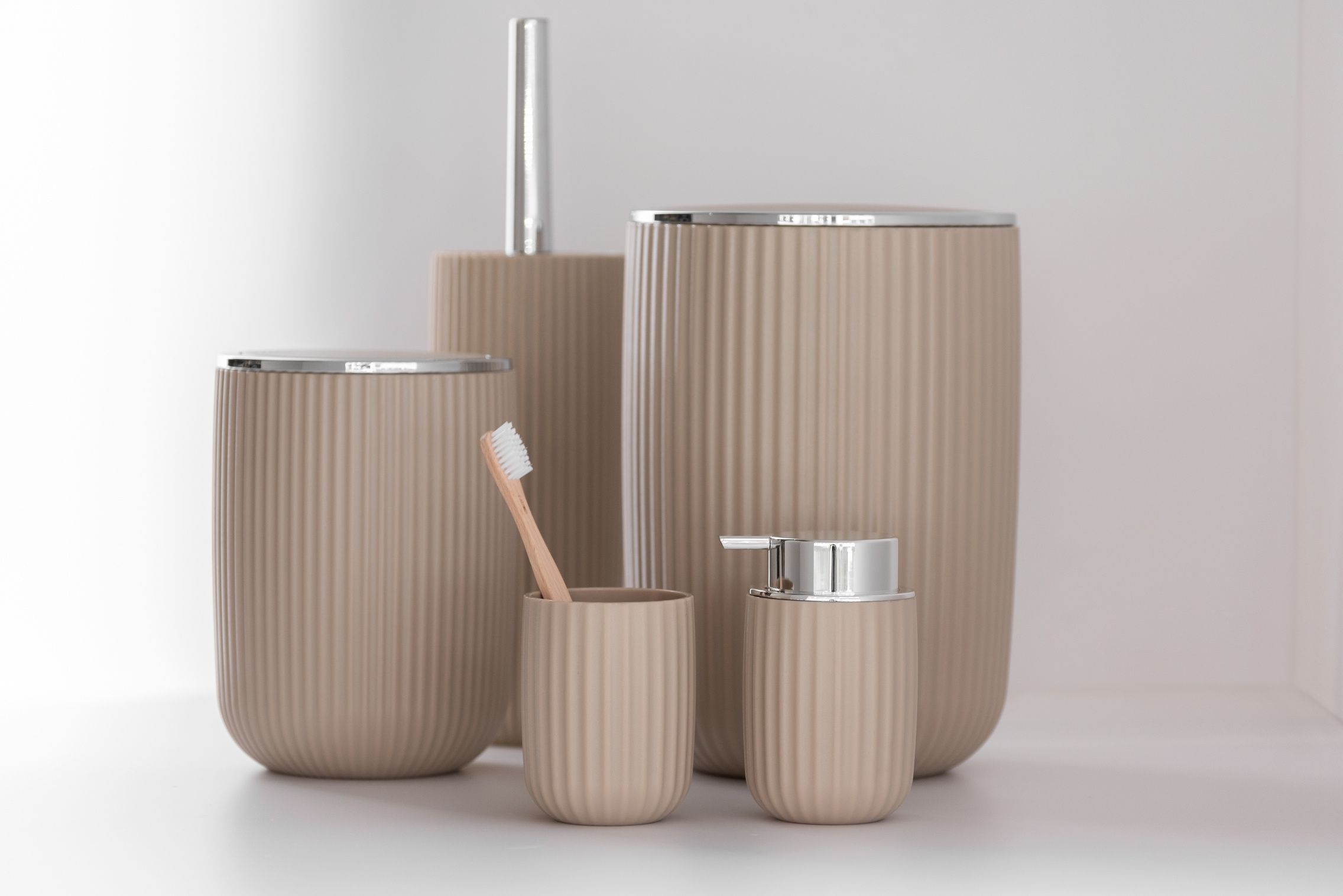Designul simplu permite crearea unei aranjări stilate în baie sau toaletă. Forma clasică creează un design elegant. Seria de baie AGROPOLI permite crearea unei aranjări coerente – este suficient să completezi setul cu un pahar pentru periuțele de dinți, un dozator pentru săpun sau alte accesorii de toaletă.