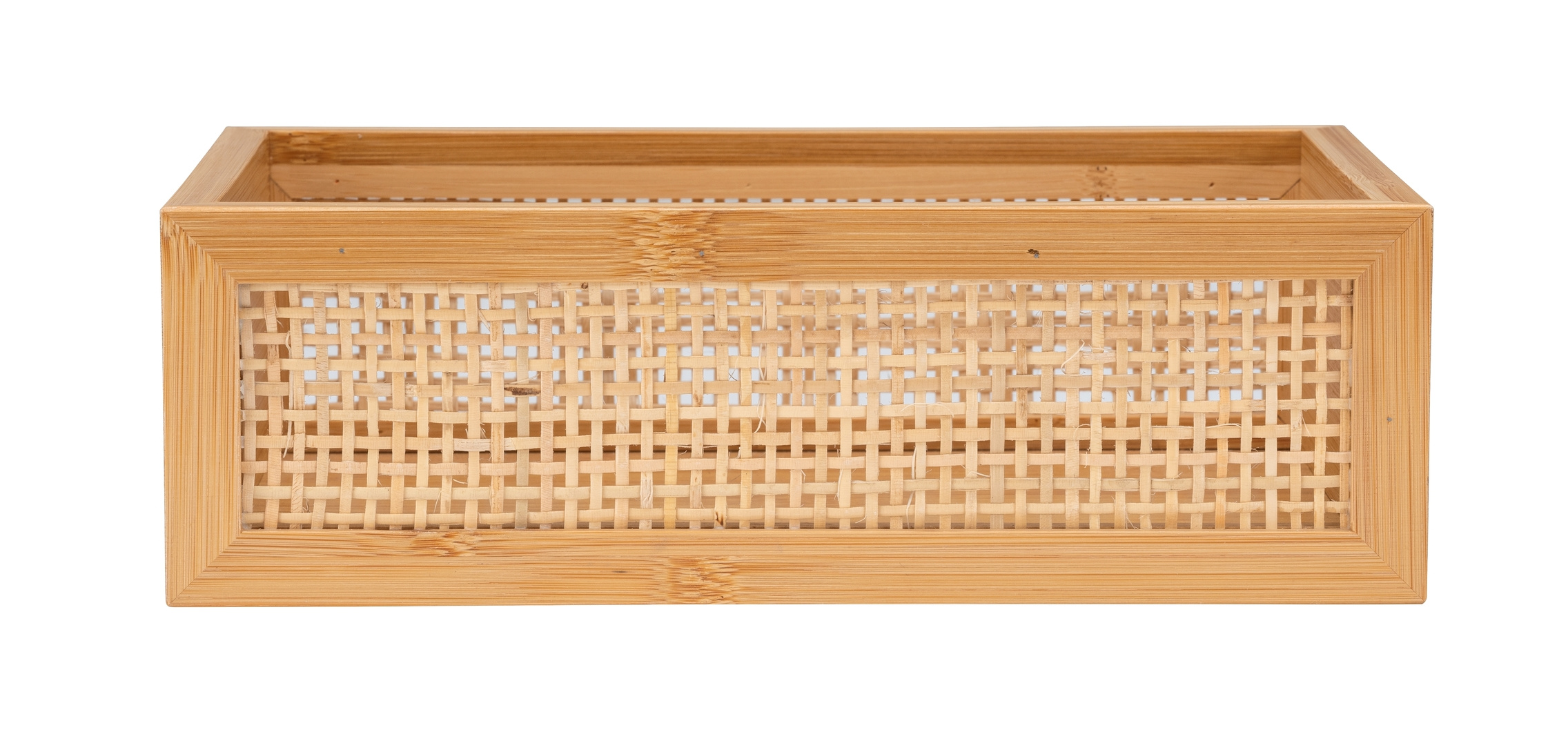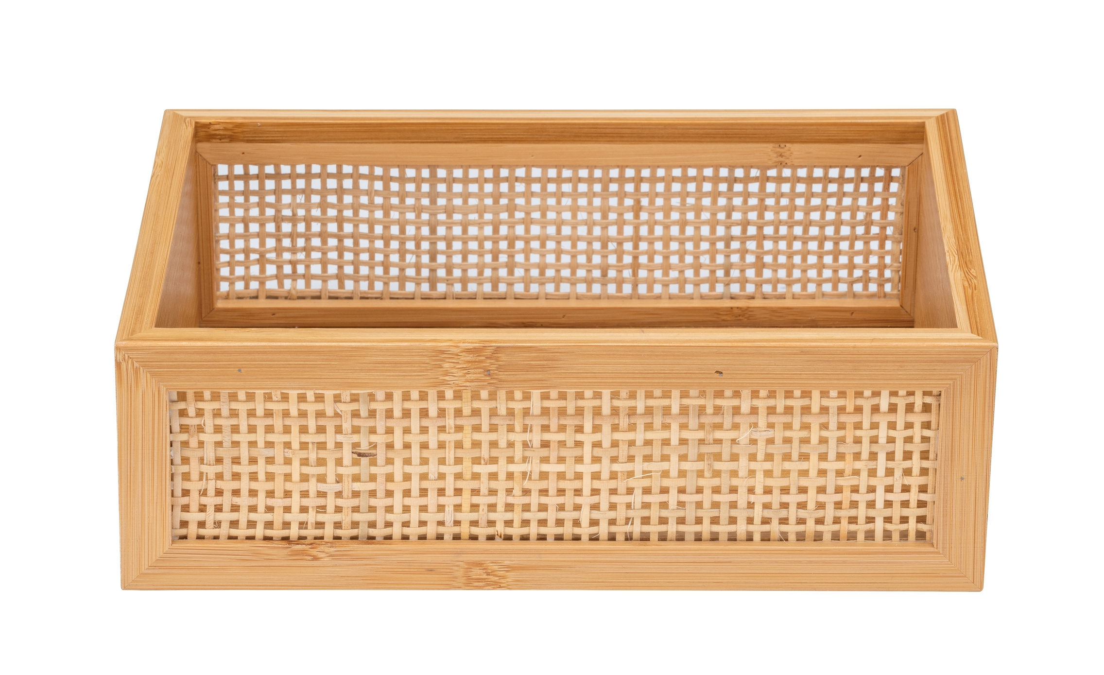 - Nu doar pentru cosmetice: Coșul din bambus poate fi folosit și pentru a păstra diverse mărunțișuri, portofele sau un set de bijuterii. Se va dovedi util și în bucătărie, ca tavă pentru recipiente cu condimente.