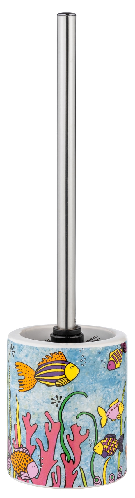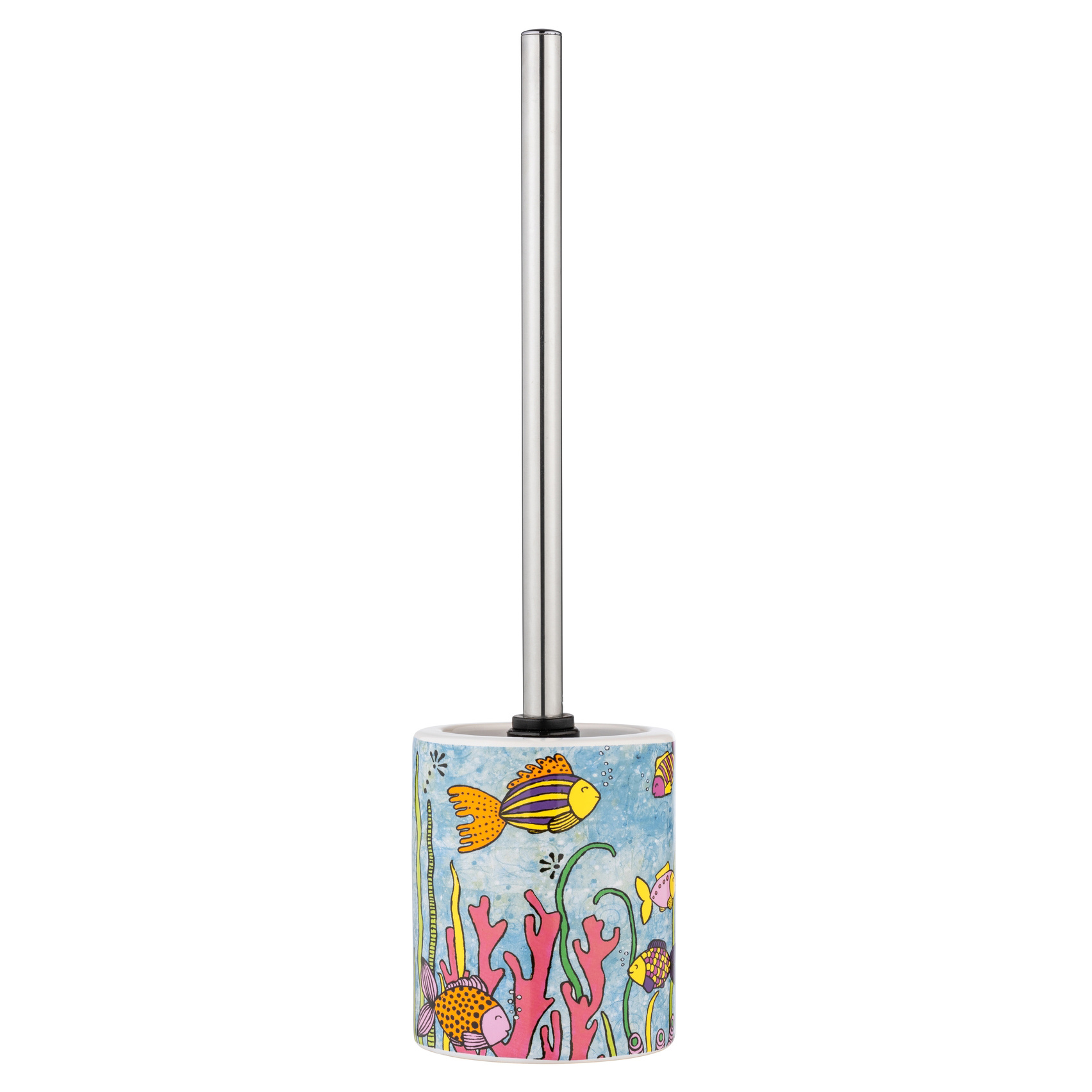 Perie de toaletă de la marca WENKO - un element funcțional cu un recipient în design original. Recipient colorat în diferite teme: Recipientul pentru perie de toaletă din ceramică este disponibil în două tipuri: cu temă marina și temă de luncă. O poți alege pe cea care se potrivește cel mai bine decorului băii tale. Perie de înaltă calitate cu cap înlocuibil: Suportul conține o perie de plastic neagră cu un diametru de 8 cm. Capul de perie poate fi înlocuit cu ușurință pentru utilizare și igienă pe termen lung. Capete de schimb suplimentare sunt disponibile și în magazinul nostru. Colaborare cu artista Tina Hötzendorfer: Acest suport ceramic pentru perii de toaletă a fost creat în colaborare cu Tina Hötzendorfer de la Rollin'Art. Fabricat din ceramică și oțel inoxidabil: Recipientul este fabricat din ceramică, oțel inoxidabil și plastic de înaltă calitate. Acest lucru garantează durabilitate, curățare ușoară și rezistență la utilizarea de zi cu zi. Creați o baie unitară cu alte elemente din colecție: Acest suport ceramic pentru perii de toaletă face parte dintr-o colecție mai mare care include și alte produse de baie. Datorită acestui lucru, puteți crea un design coerent și elegant al băii dvs., în care toate elementele se vor armoniza între ele.