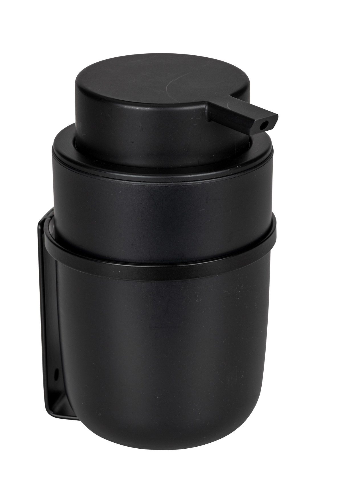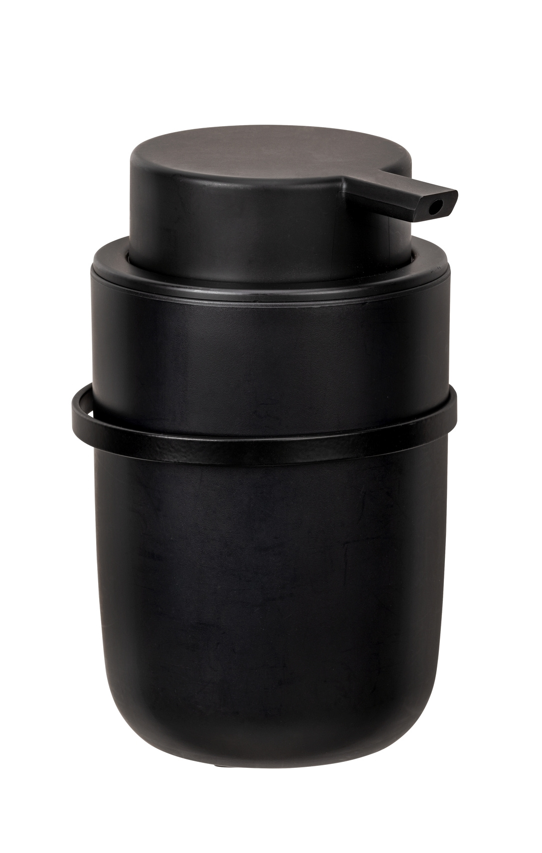 - Dispenser pentru săpun lichid: Recipient practic pentru aplicarea săpunului lichid sau gelului. Are o pompă care facilitează dozarea conținutului.