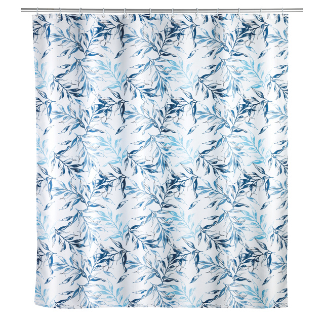 Perdeaua de duș pentru cadă - model de frunze și culori albastre care vor funcționa bine în orice baie modernă
