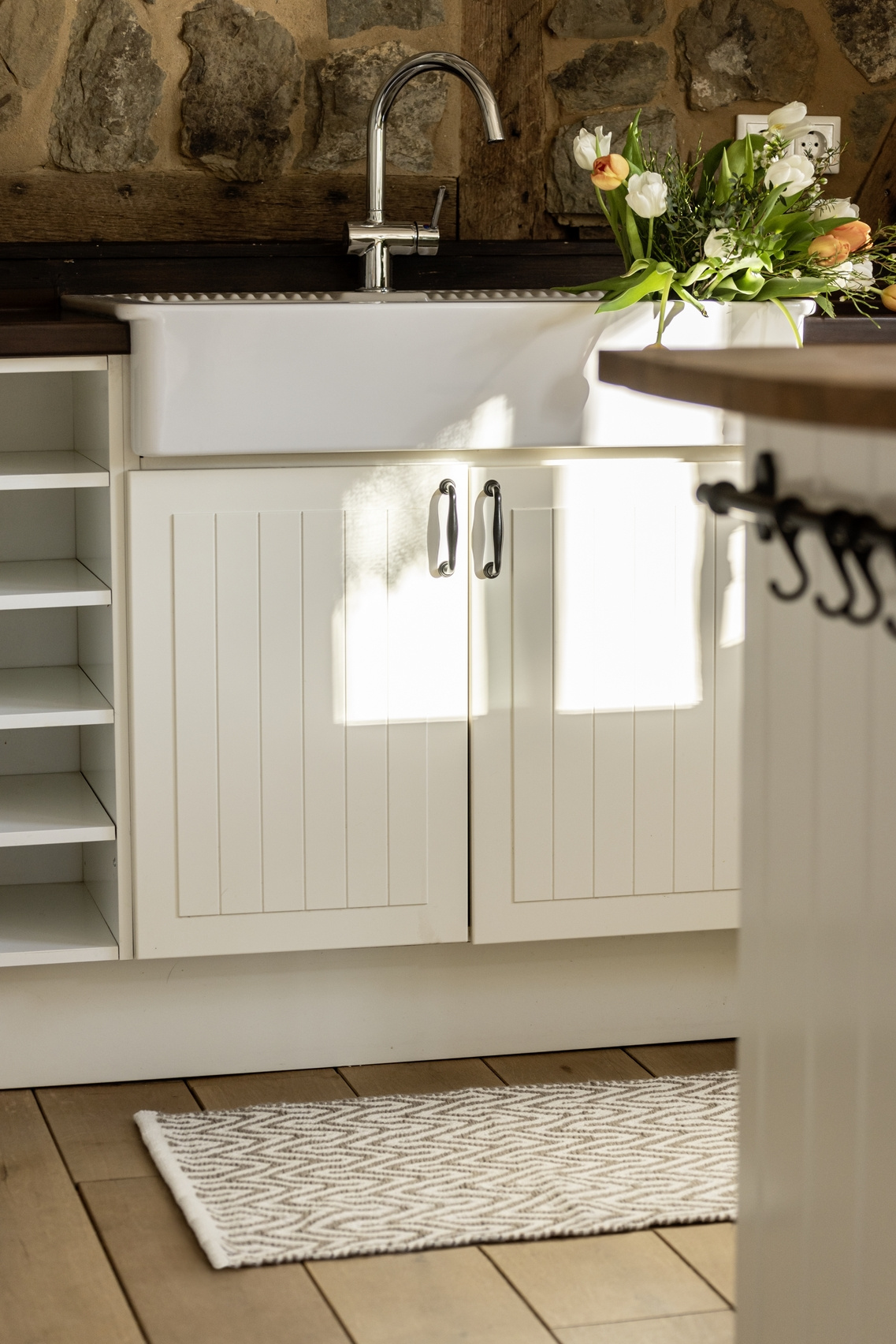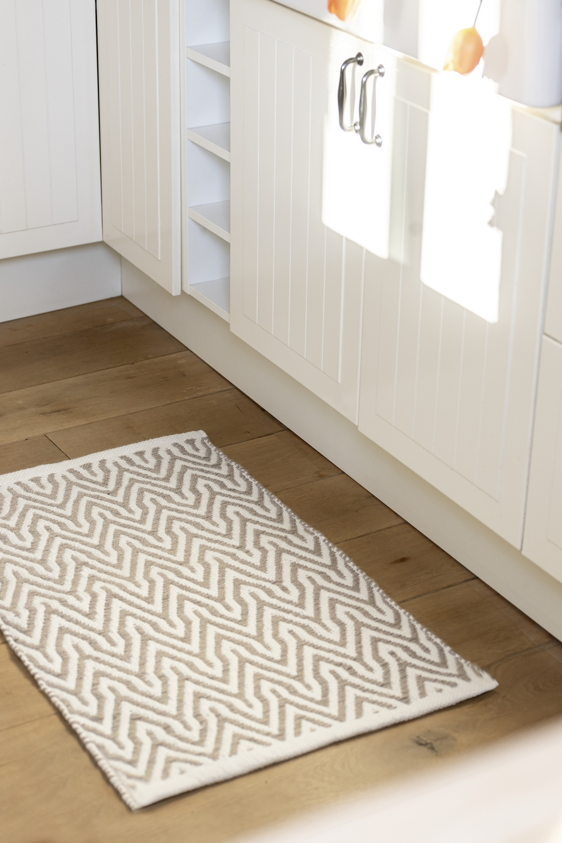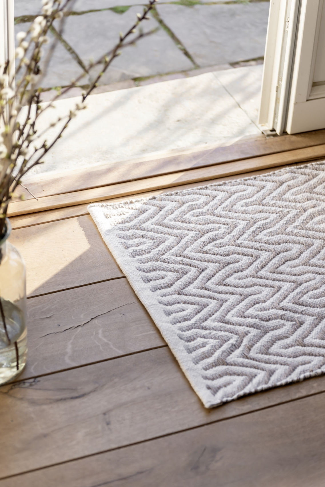 - Ecodizain: Covorul de baie ALTAI este fabricat din poliester reciclat, ceea ce îl face o alegere prietenoasă cu mediul. Tonurile neutre bej fac ca acesta să se integreze perfect în diverse stiluri de interior.