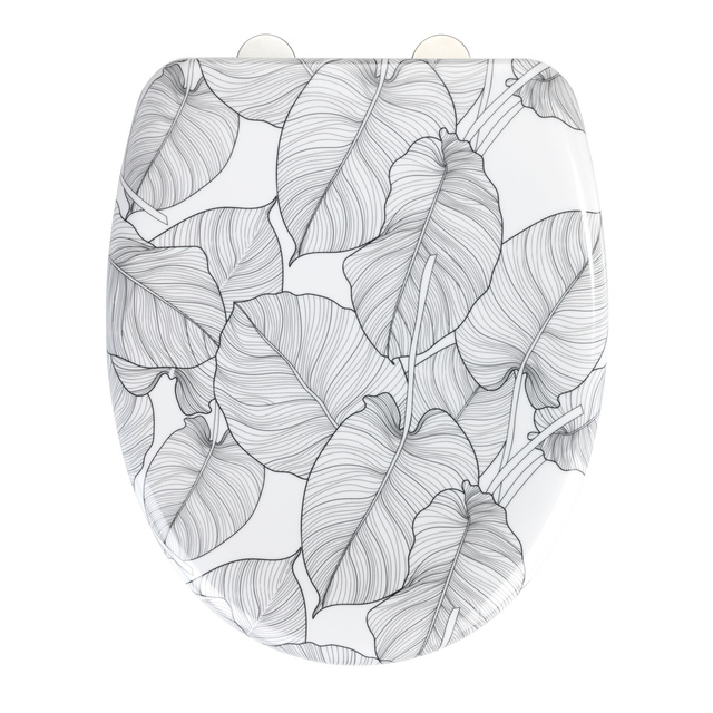 - Toaletă din duroplast cu sistem easy-close și imprimeu decorativ cu frunze