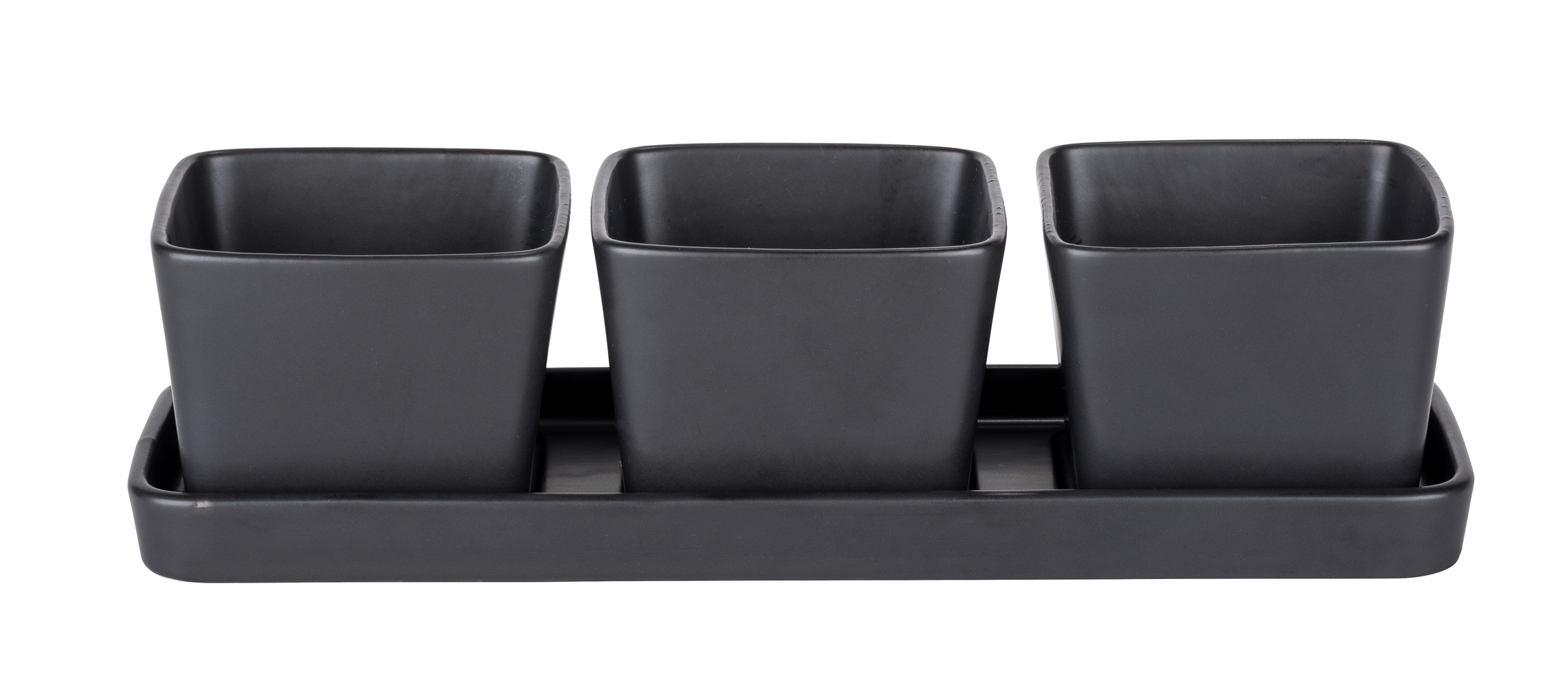 - Set gustări din 4 piese . Setul de vase este format din trei boluri și o tavă. Tava poate fi proiectată să țină boluri sau să servească ca o porție independentă de gustări.
