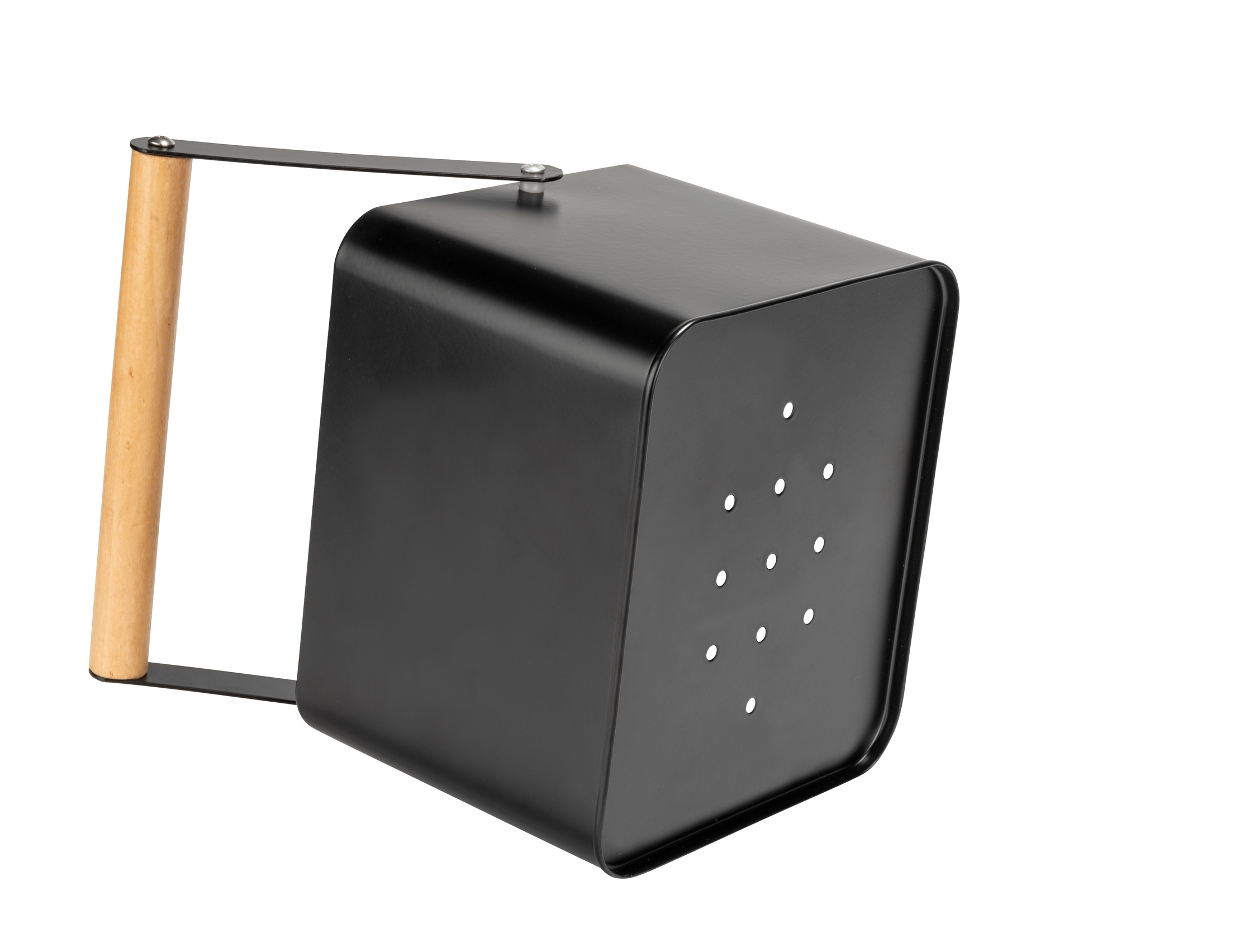 - Fabricat din metal . Un coș metalic cu mâner de lemn va găzdui și ridica sticle și borcane mai grele. Pereții înalți împiedică vasele să cadă, chiar și într-o zi cu vânt.