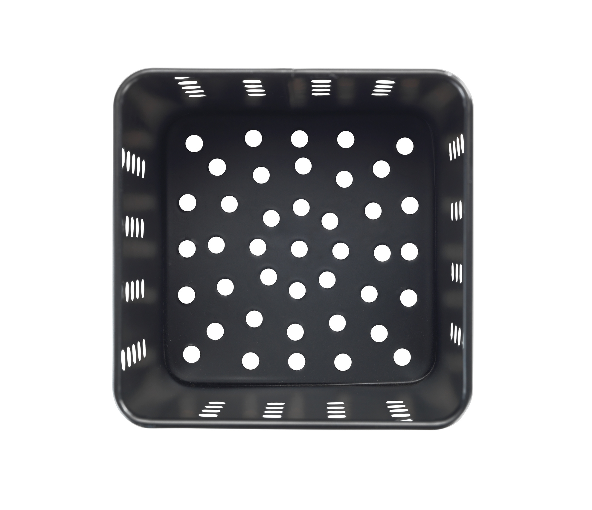 - Aspect simplu: Baza are forma unui pătrat, iar pereții sunt dreptunghiulari. Recipientul este de culoare neagră.