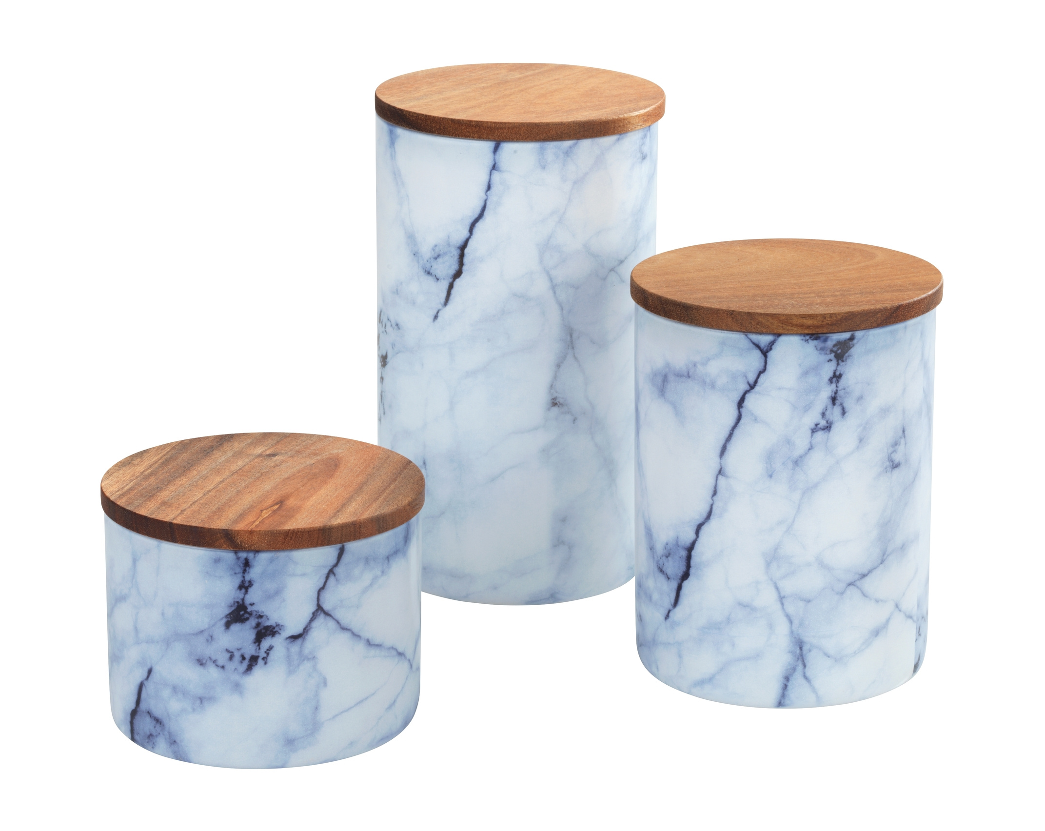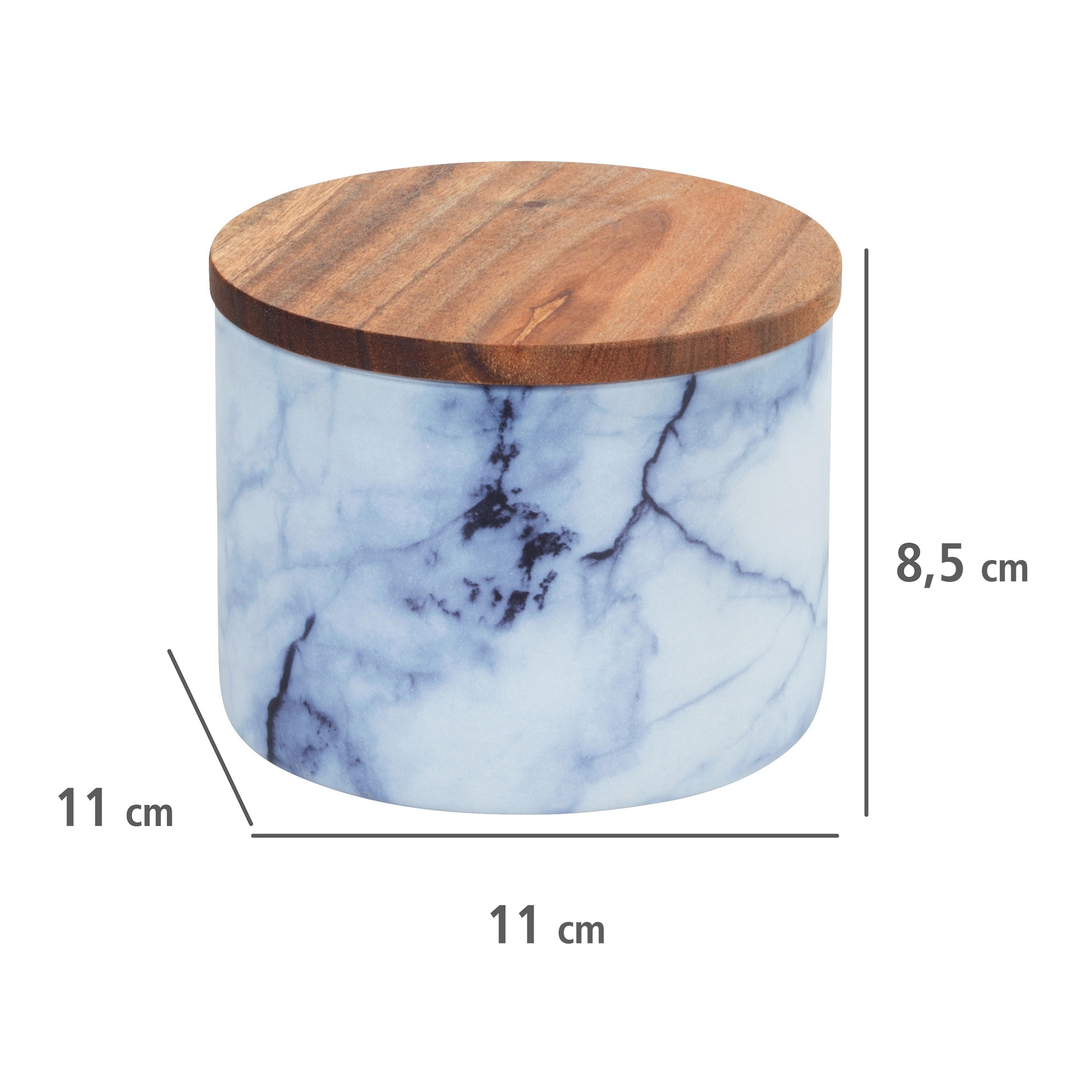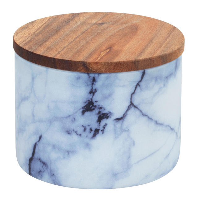 Recipient pentru depozitarea alimentelor vrac MIO cu design unic & ndash; un recipient cu model de marmură și un capac din lemn