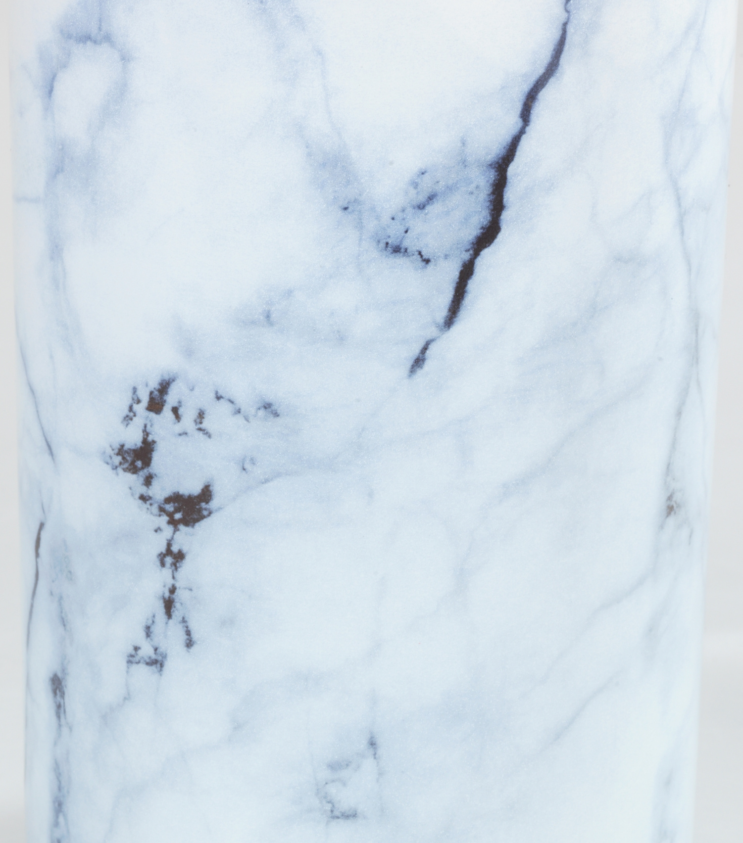 - Imitație de marmură . Modelul care imita marmura in nuante de albastru pe fond alb se armonizeaza frumos cu o culoarea naturala a capacului din lemn. Acest design face ca recipientele să înfrumusețeze interiorul bucătăriei.