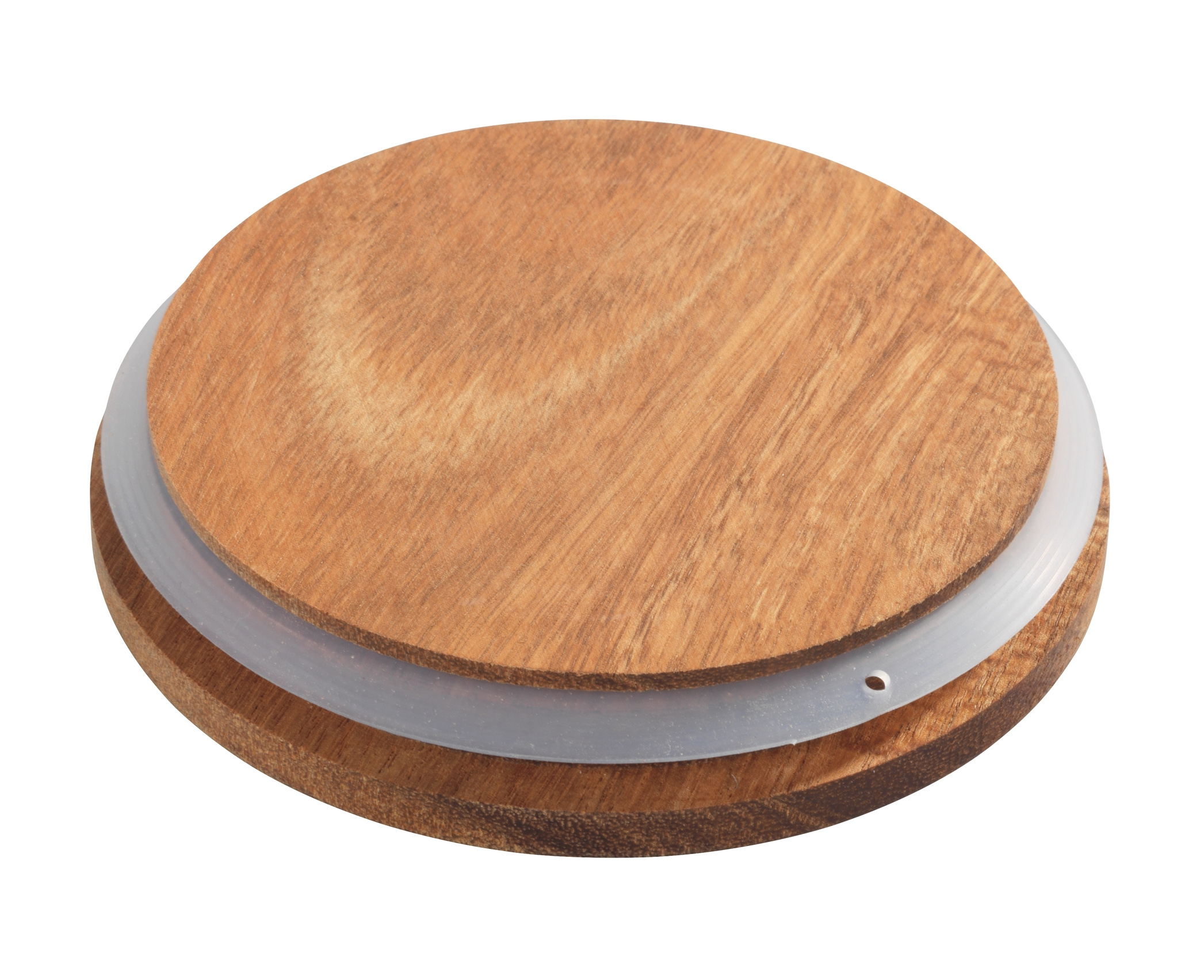 - Sticlă și lemn . Recipientul este din vitraliu, iar capacul este lemn de salcâm certificat FSC & reg;. Aceste materiale sunt durabile, ușor de curățat, ecologice și potrivite pentru contactul cu alimentele.