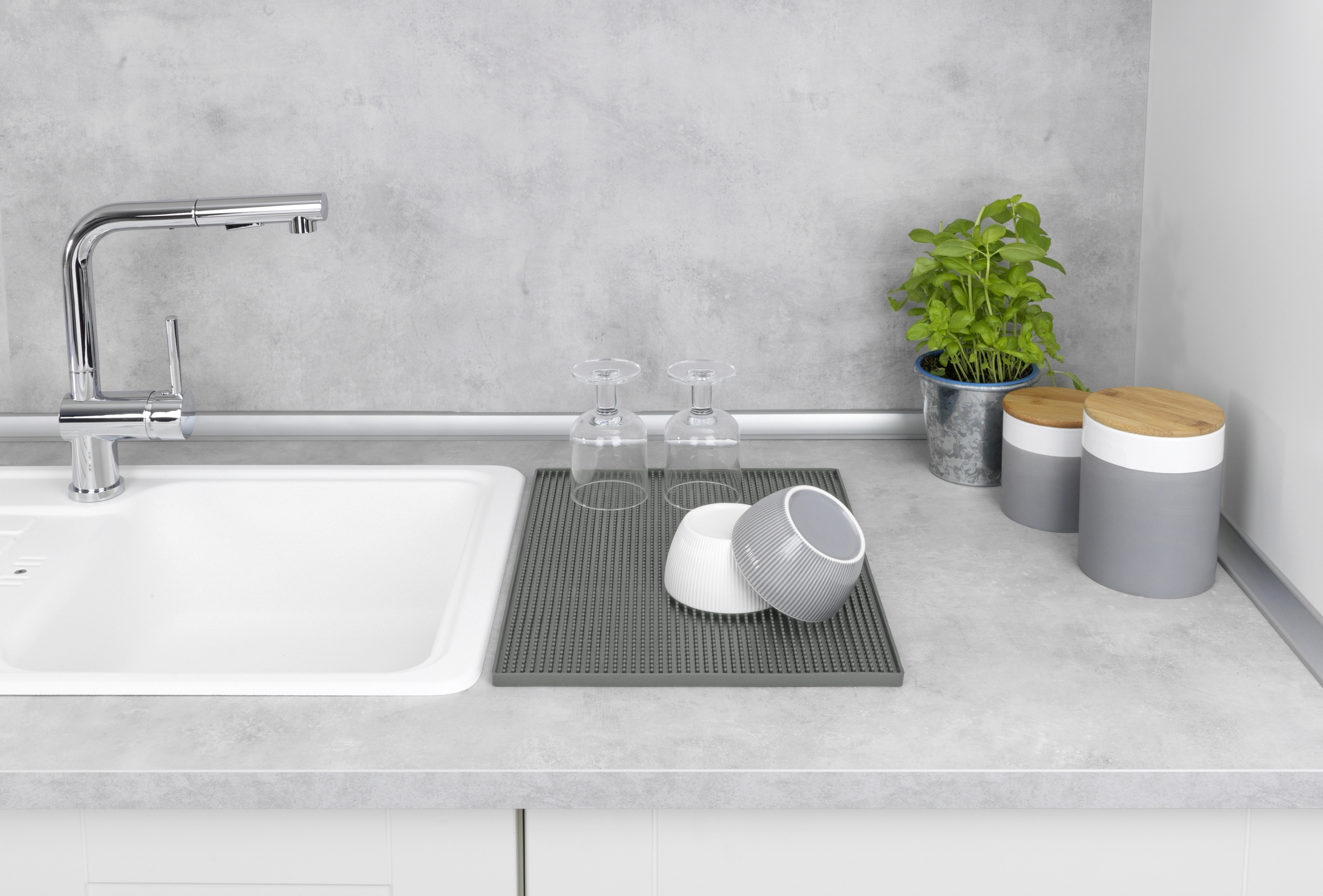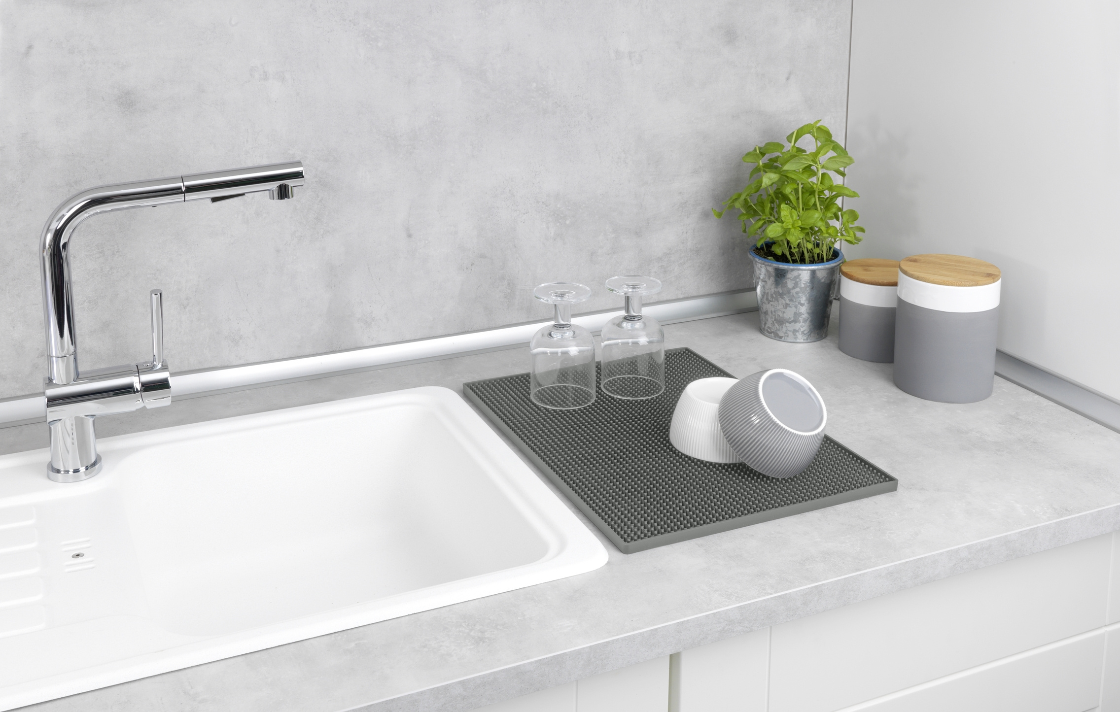 • Ușor de depozitat . După utilizare, covorașul uscat poate fi pur și simplu rulat sau depozitat. Spre deosebire de uscătoarele clasice de vase, covorașul ocupă un spațiu minim și va fi perfect pentru o bucătărie mică.