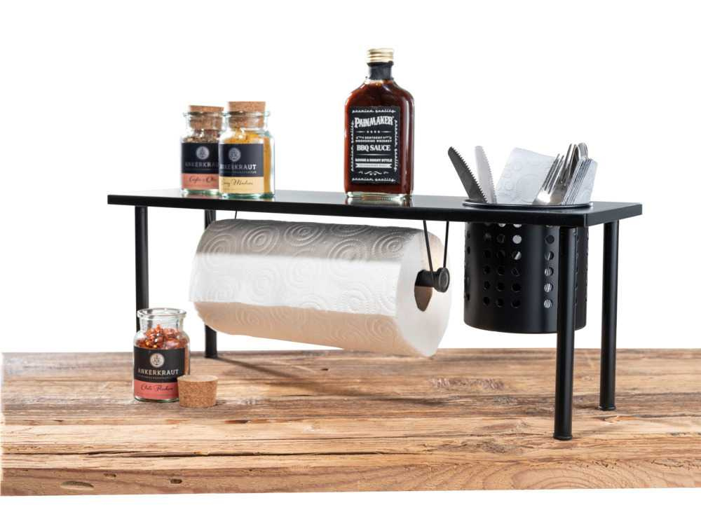 Raft de bucătărie cu suport pentru prosoape de hârtie si tacamuri BLANCO, 55 x 21 x 18 cm, WENKO