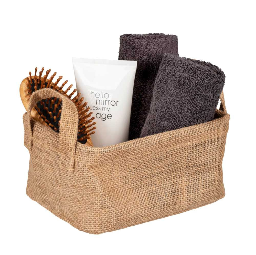 Coș de depozitare din iută cu mânere JUNA S & ndash; un recipient cu bun gust pentru depozitarea jucăriilor, a unui prosop, a produselor cosmetice sau a mărunțișelor
