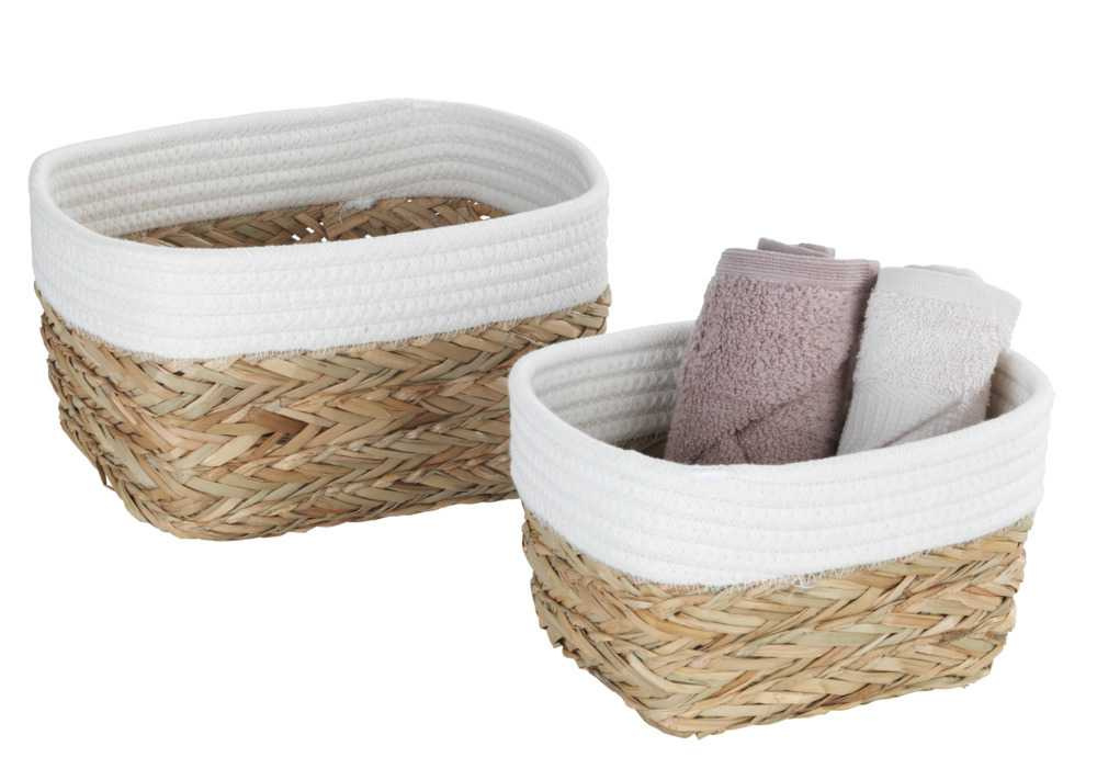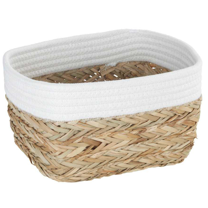 - Culori contrastante . Coșul de depozitare combină 2 culori clasice: iarbă de mare maro naturală cu o țesătură interioară alba. Această combinație se va potrivi cu multe aranjamente.