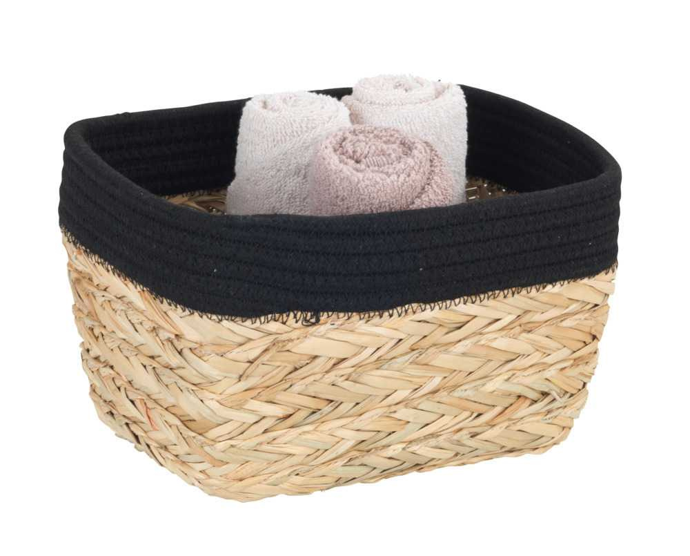 - Culori contrastante . Coșul de depozitare combină 2 culori clasice: iarbă de mare maro naturală cu o țesătură interioară alba. Această combinație se va potrivi cu multe aranjamente.