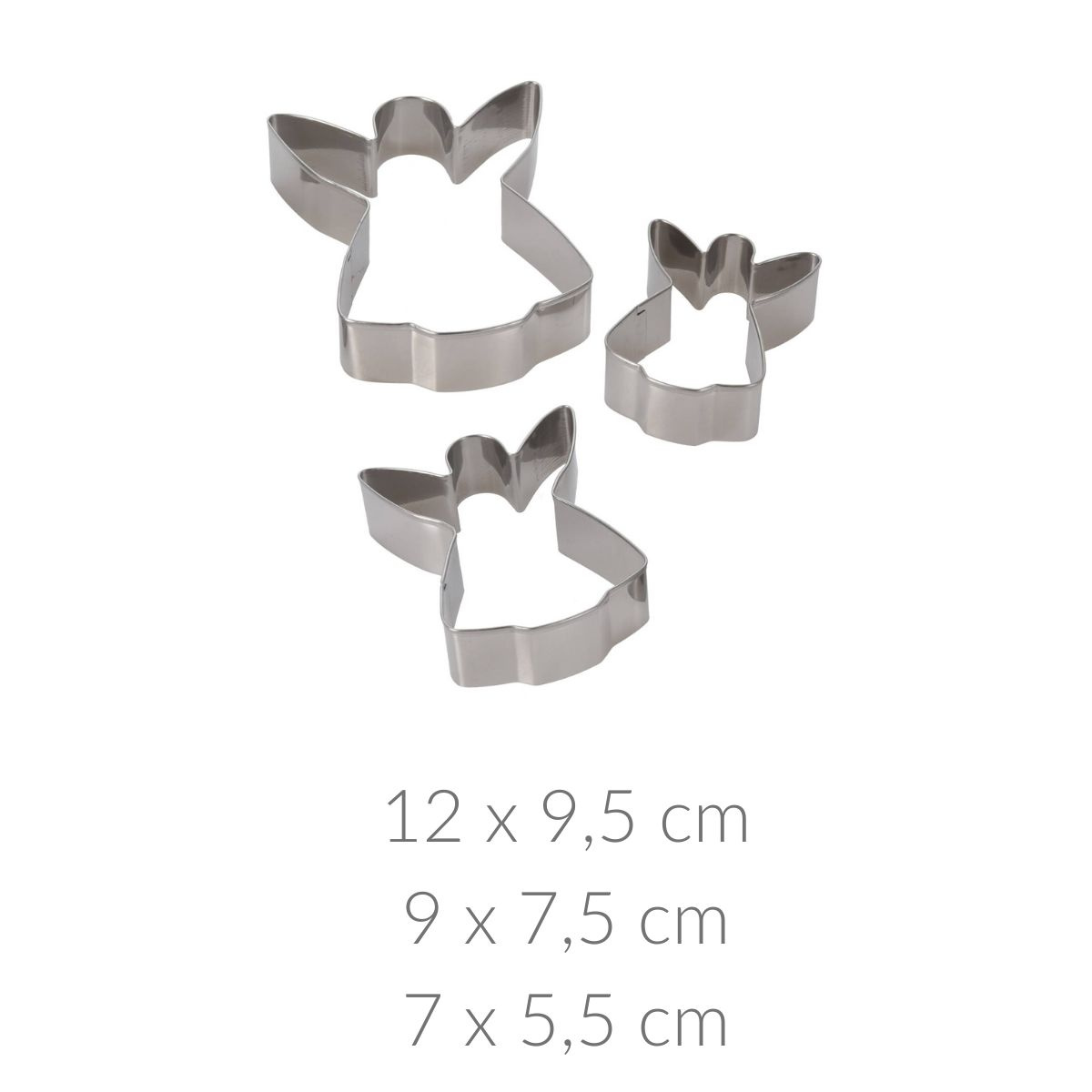 - Trei dimensiuni: Setul include trei dimensiuni de matrițe: 12 x 9,5 cm, 9 x 7,5 cm, 7 x 5,5 cm. Înălțimea celei mai mari matrițe este de 2,5 cm.