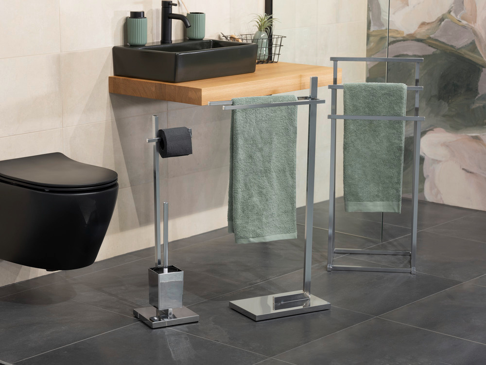 Suport pentru prosoape cu 2 brațe din seria QUADRO va ajuta la menținerea băii în ordine și la accelerarea uscării prosoapelor. Design minimalist și elegant > Se potrivește perfect cu băi în stil modern și multe altele. Baza stabilă realizată din metal elegant, de înaltă calitate. Include brațe dreptunghiulare paralele .