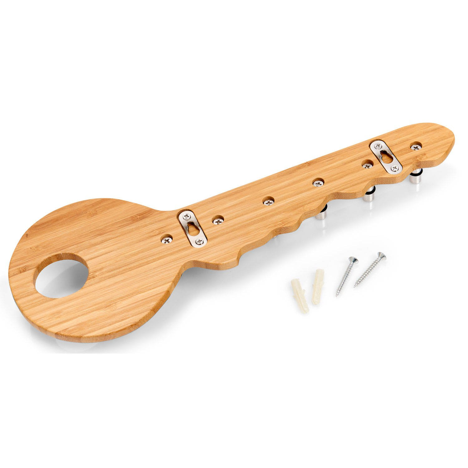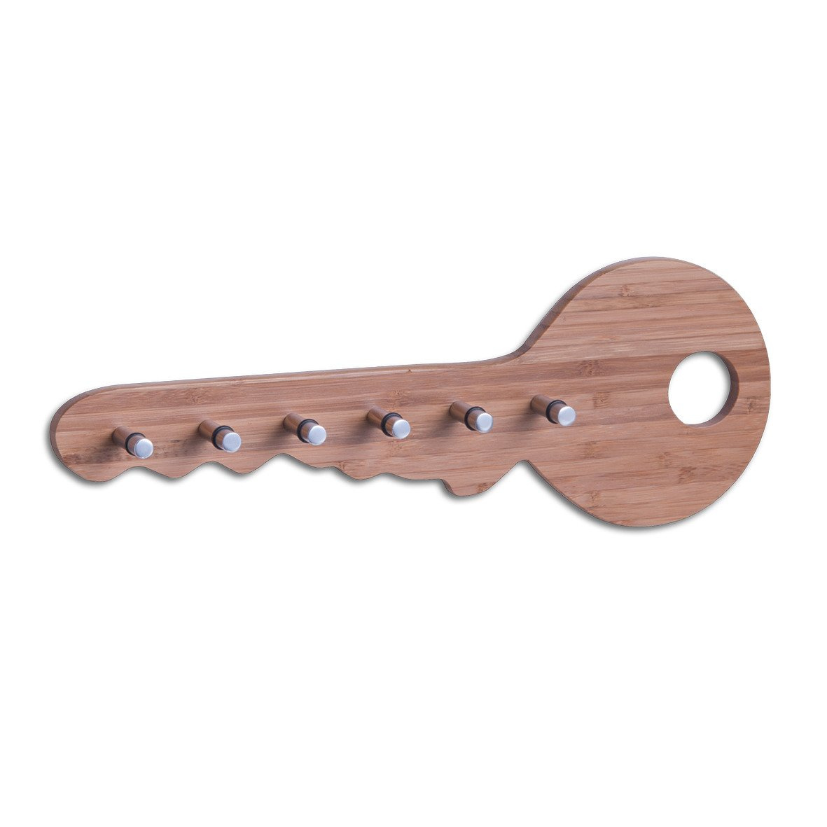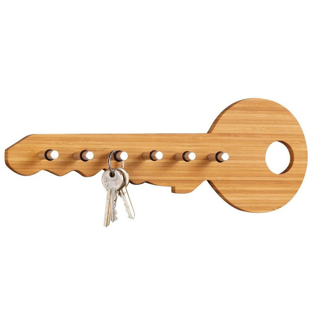 Suport decorativ în formă de cheie cu șase cârlige. Perfect pentru agățat chei, mici accesorii de grădină și haine. Va arata frumos atat acasa cat si pe balcon, terasa sau in gradina. Complet din lemn natural de bambus. Proiectat pentru montare pe perete. Solid și realizat estetic.