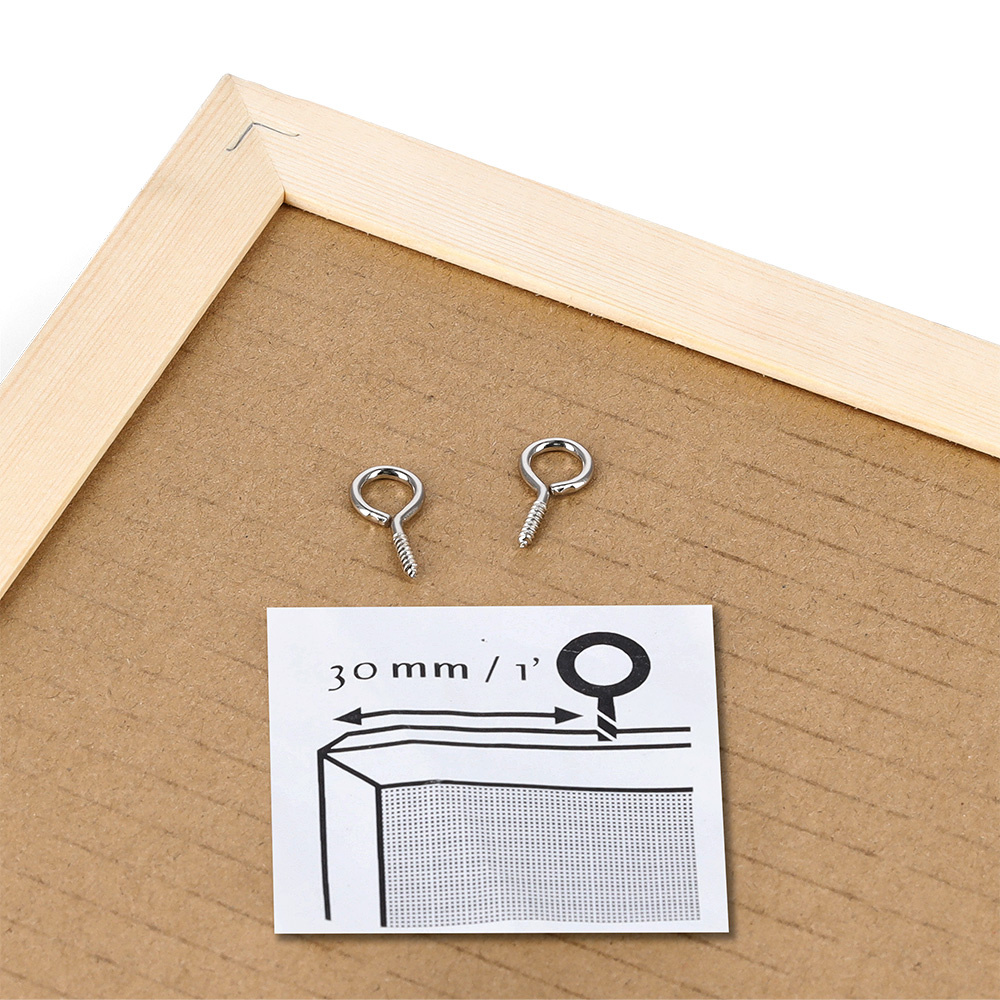 - Materiale: Tablă metalică, neagră, montată într-un cadru simplu din pin. Setul include două cârlige, cu ajutorul cărora o poți agăța în orice loc din casă.