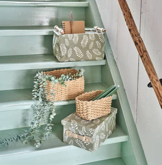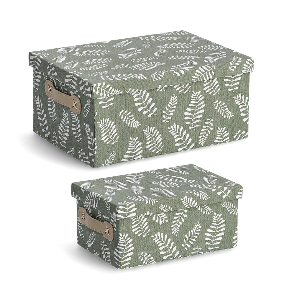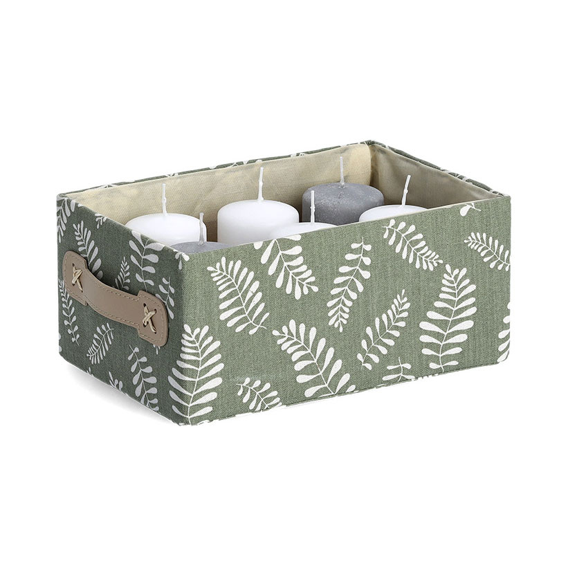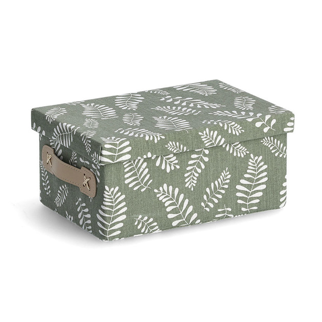 Cutie depozitare cu capac, bumbac, motiv frunze
