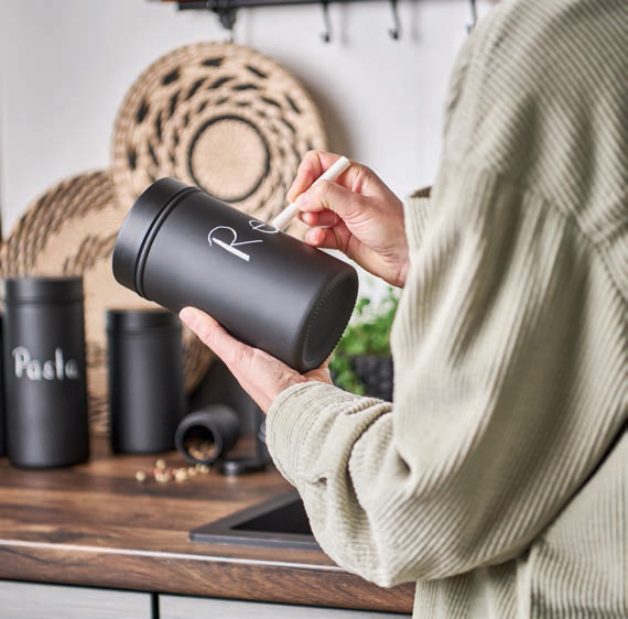 - Un borcan practic cu funcția de tablă de scris, pentru a putea păstra alimentele