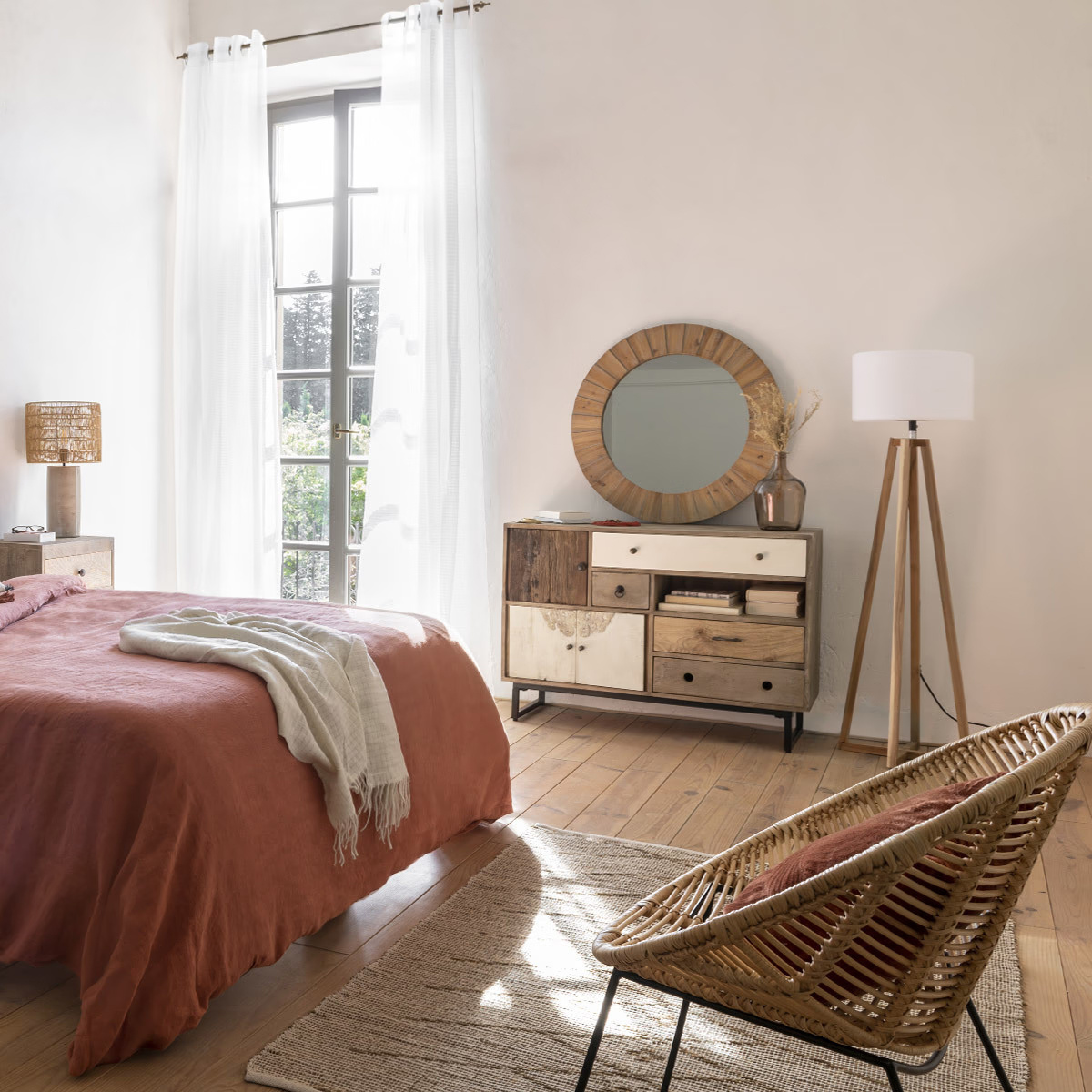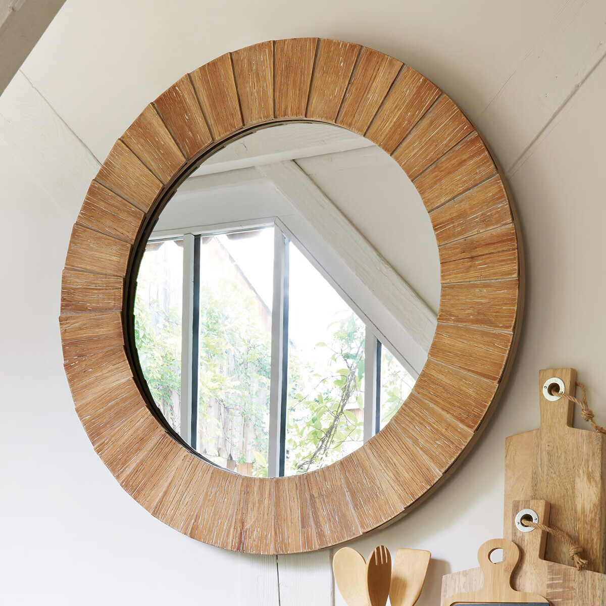 - Oglinda in rama din lemn de brad, Ø 83 cm