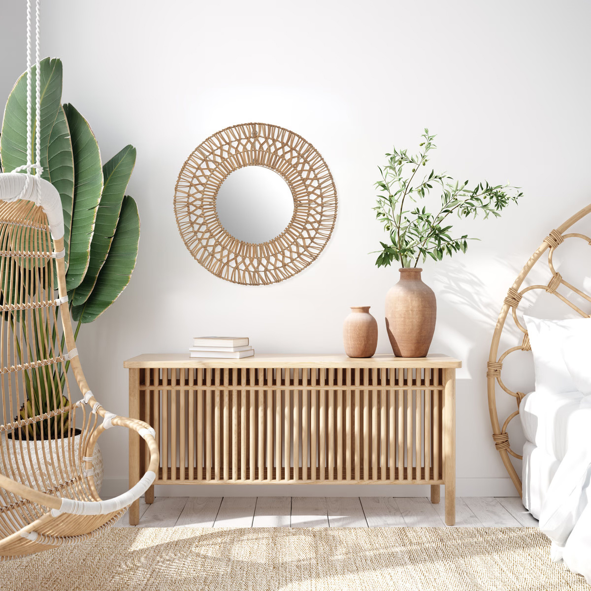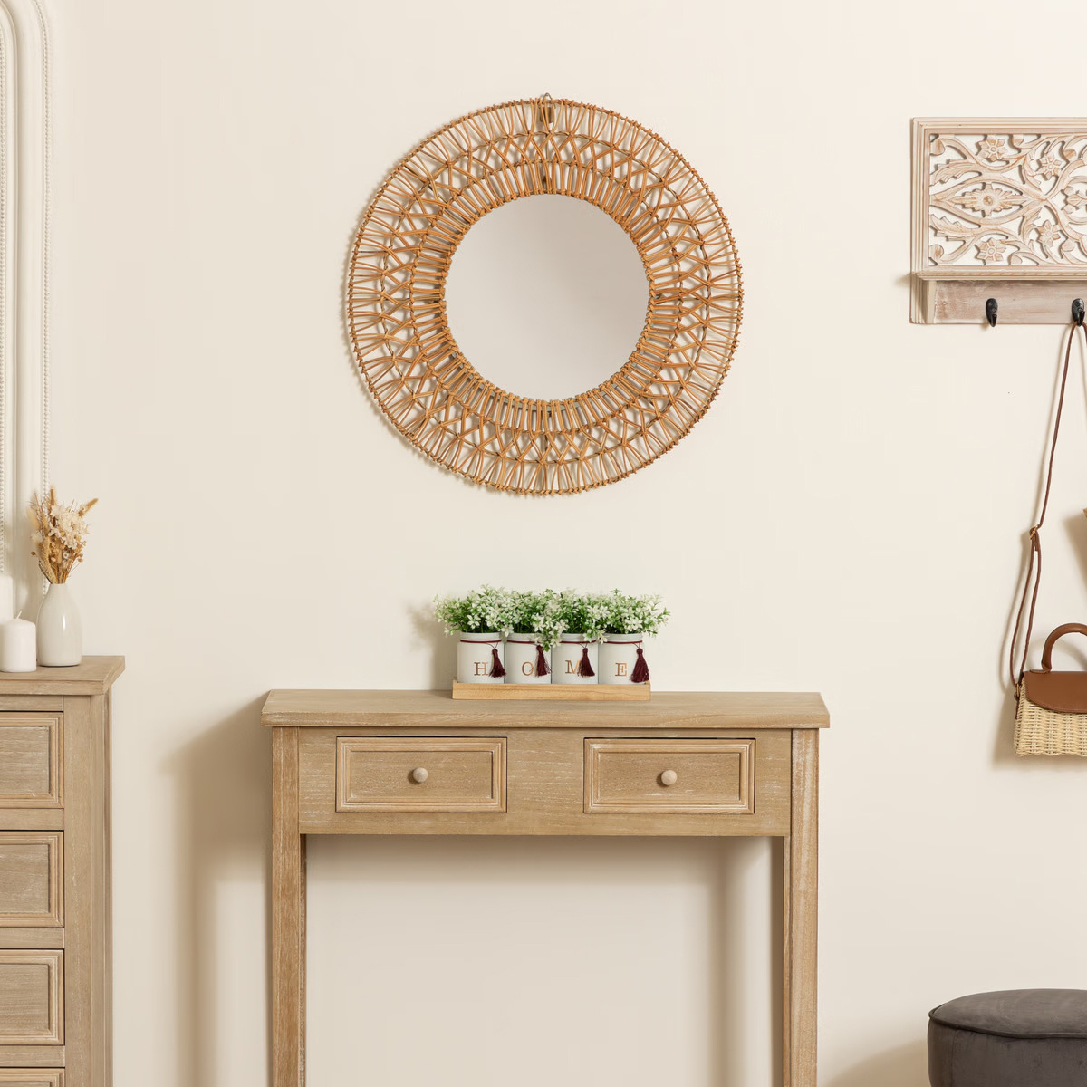 • Culoare bej: Rama oglinzii Milou este realizată dintr-o împletitură frumoasă, bej, care se potrivește perfect cu diverse stiluri de design interior, adăugând un accent subtil și un aspect cald.