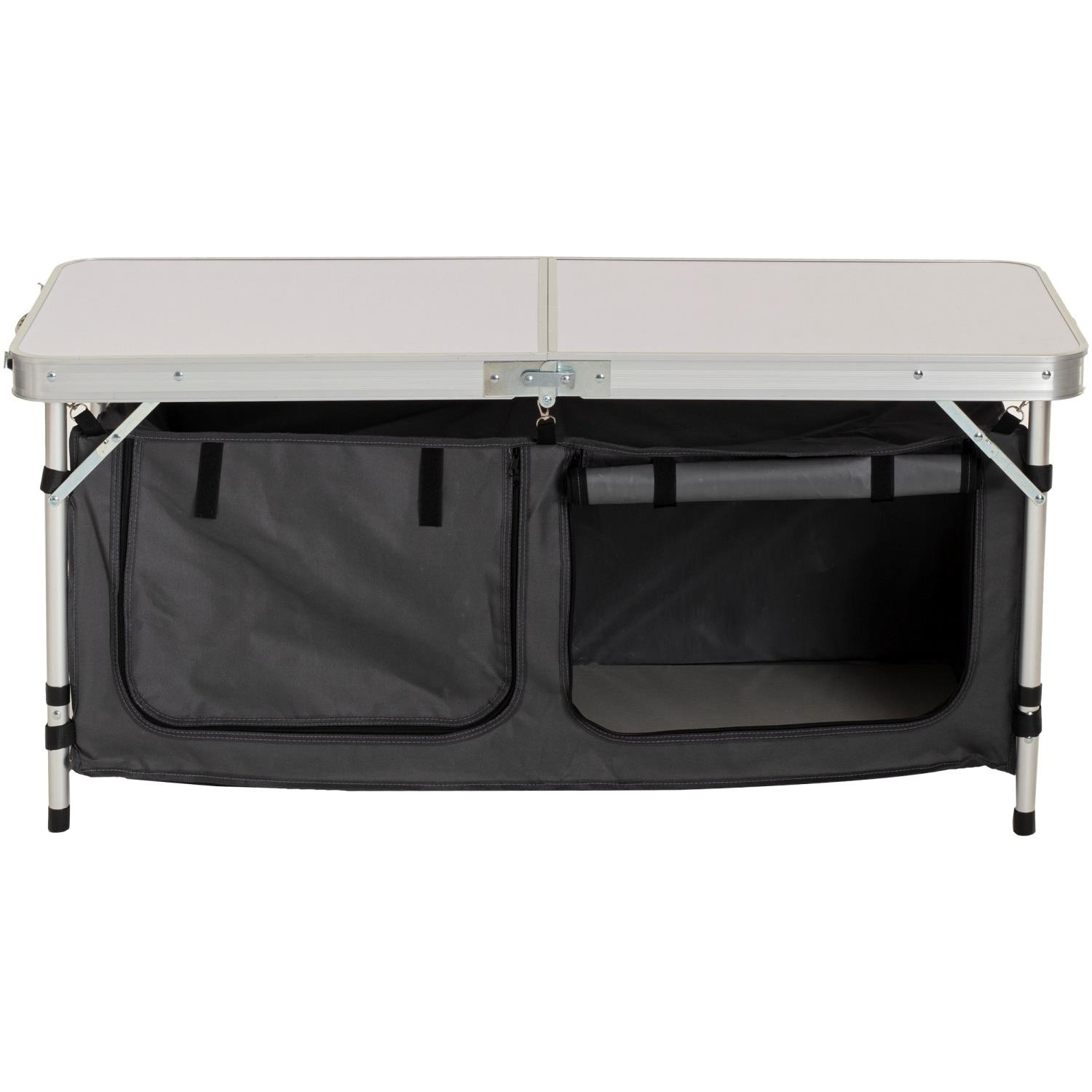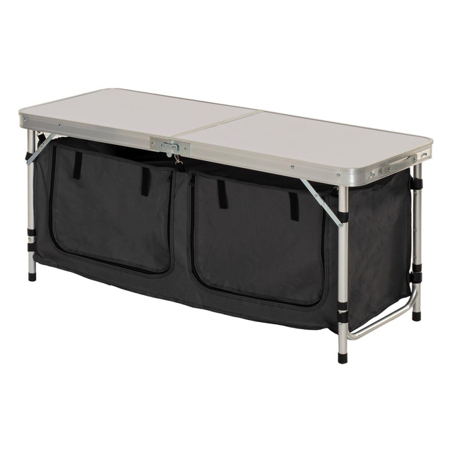 Spațiu de depozitare: Există două compartimente separate de depozitare sub blatul mesei. Acest lucru facilitează organizarea, chiar și în condiții deosebite. În interior puteți ascunde, de exemplu, vase pentru grătar.