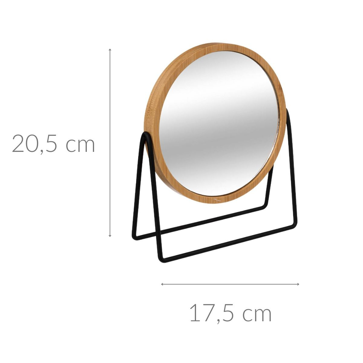 Oglindă de machiaj cu suport metalic, ramă naturală din bambus