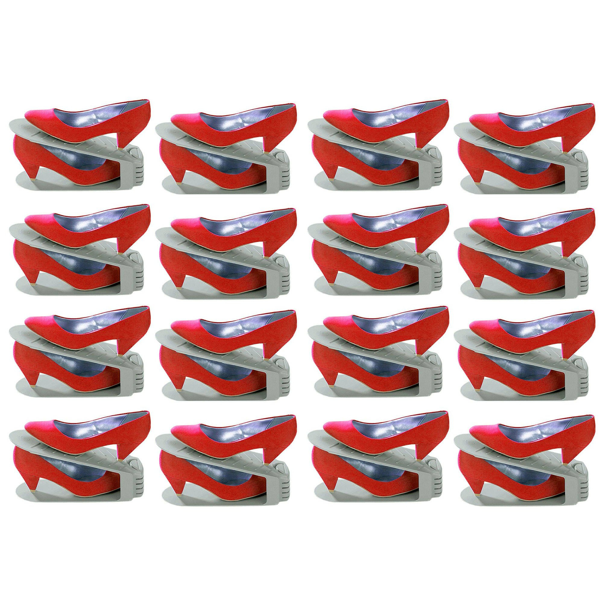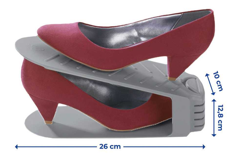 Un set de șaisprezece suporturi pentru pantofi vă va permite să vă organizați spațiul într-un mod inteligent. Datorită acestuia, vei economisi spațiu în dulap până la jumătate. În plus, îți vei proteja pantofii împotriva deteriorarii și murdăriei. Pantofii astfel aranjati vor fi intotdeauna intr-un loc usor accesibil, astfel incat nu veti mai avea probleme in a le gasi. Mânerele sunt echipate cu o bază antiderapantă, care în plus asigură poziționarea lor stabilă.