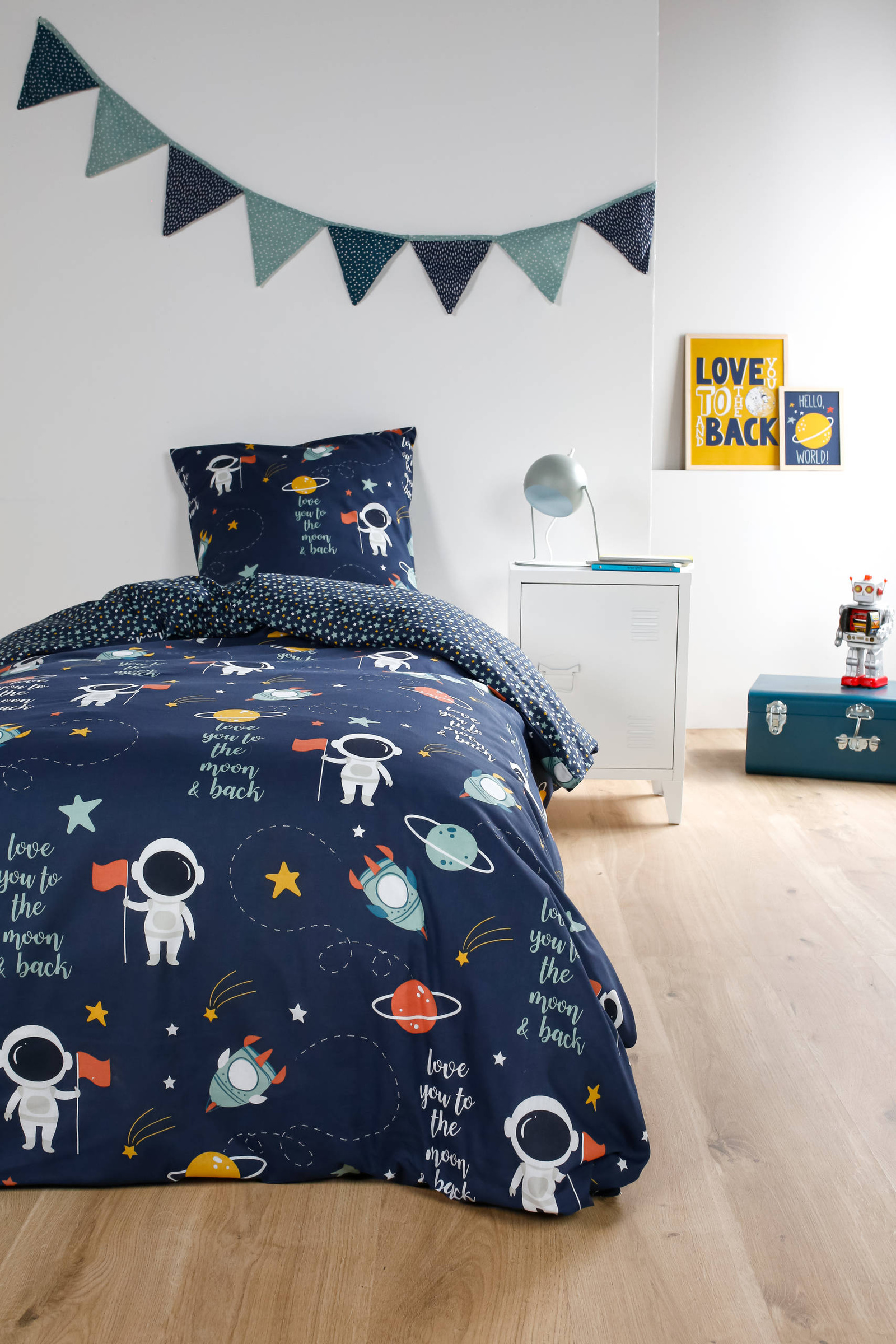 - Lenjerie de pat pentru copii inspirată din cosmos