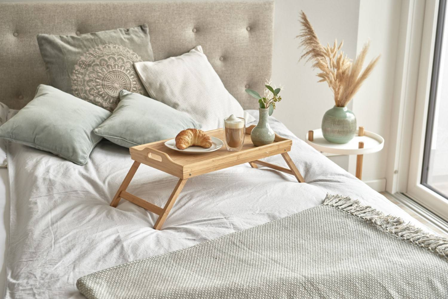 Datorita acestui lucru, puteti transporta mancaruri fierbinti, cafea sau ceai fara frica. Constructia puternica si solida va va permite sa purtati cu usurinta obiecte grele pe ea. Suprafata lacuita ajuta la mentinerea curateniei. Tava este usor de depozitat - ocupa putin spatiu atunci cand se pliaza picioarele.